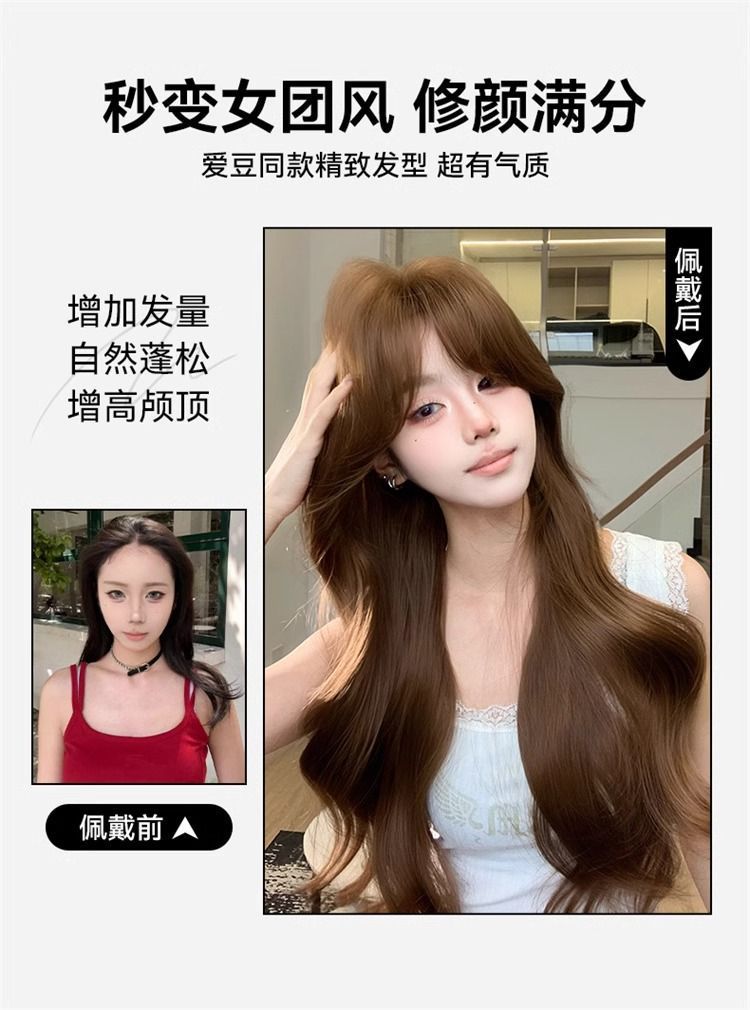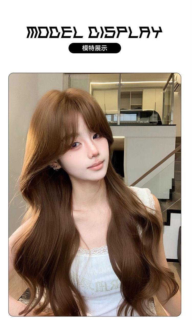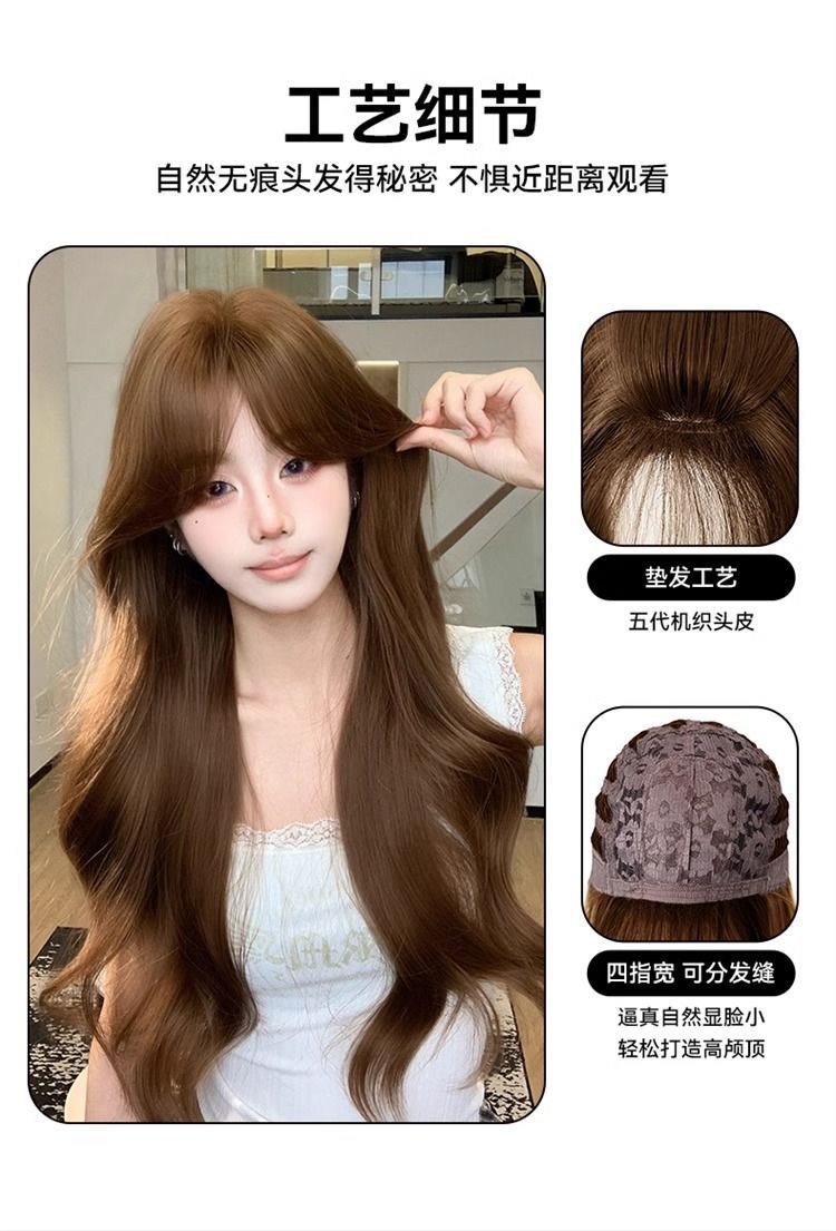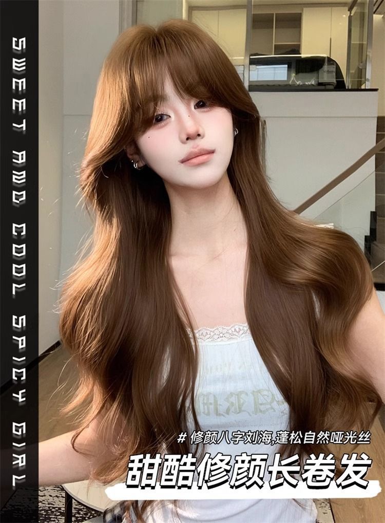 Полный парик для женщин в корейском стиле, элегантный, аккуратно подстриженные виски, большие волны, длинные кудрявые волосы, модный натуральный полный парик