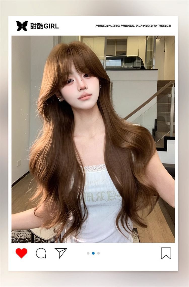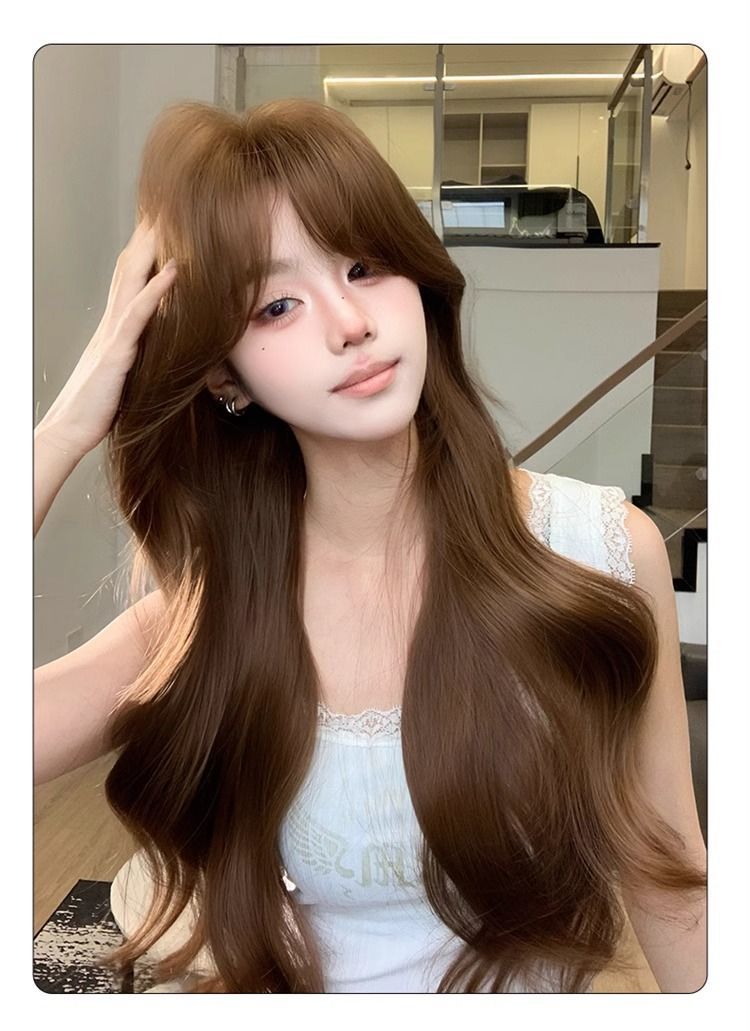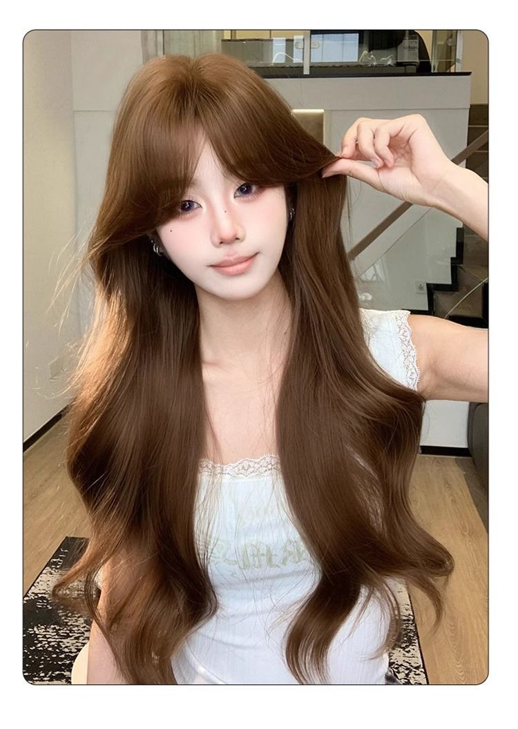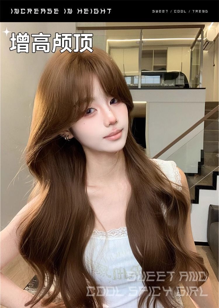 Полный парик для женщин в корейском стиле, элегантный, аккуратно подстриженные виски, большие волны, длинные кудрявые волосы, модный натуральный полный парик