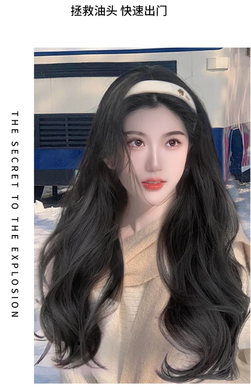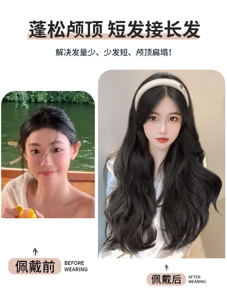 Парик с повязкой, интегрированные длинные кудрявые волосы, полуголовной убор, съемная камелия, имитация естественного роста волос