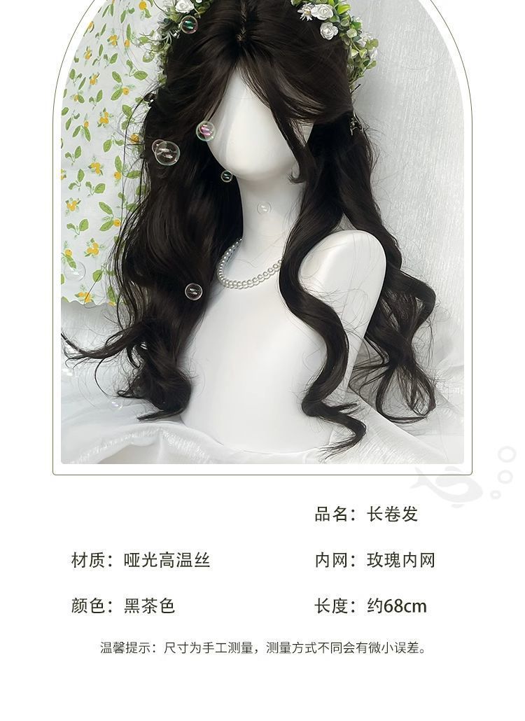 [Солнечное восхваление] Парик для женщин с длинными волосами, стиль весна-лето, корейский стиль, средний пробор, большие волны, длинные кудрявые волосы, полный головной убор