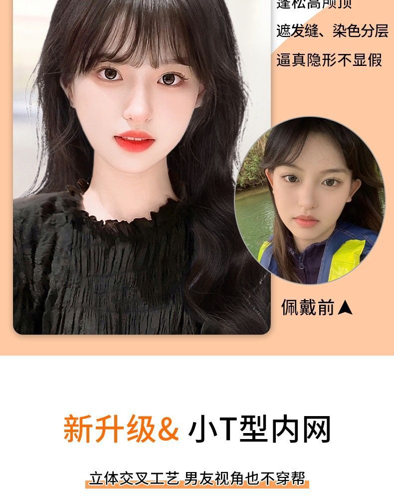 Парик для женщин с полными натуральными волосами, высокий коронный, невидимый и бесшовный объем, скрывающий седые волосы, парик с французскими челкой