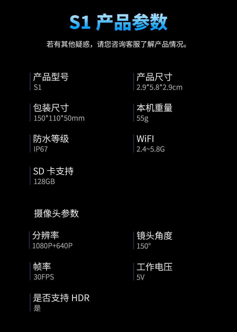 📦 | 1080p+480p+rearview mirror bracket+usb power supply | S1 | ¥108.0 / ≈ 1 315 ₽ | 1000 | 6149528599295 | |