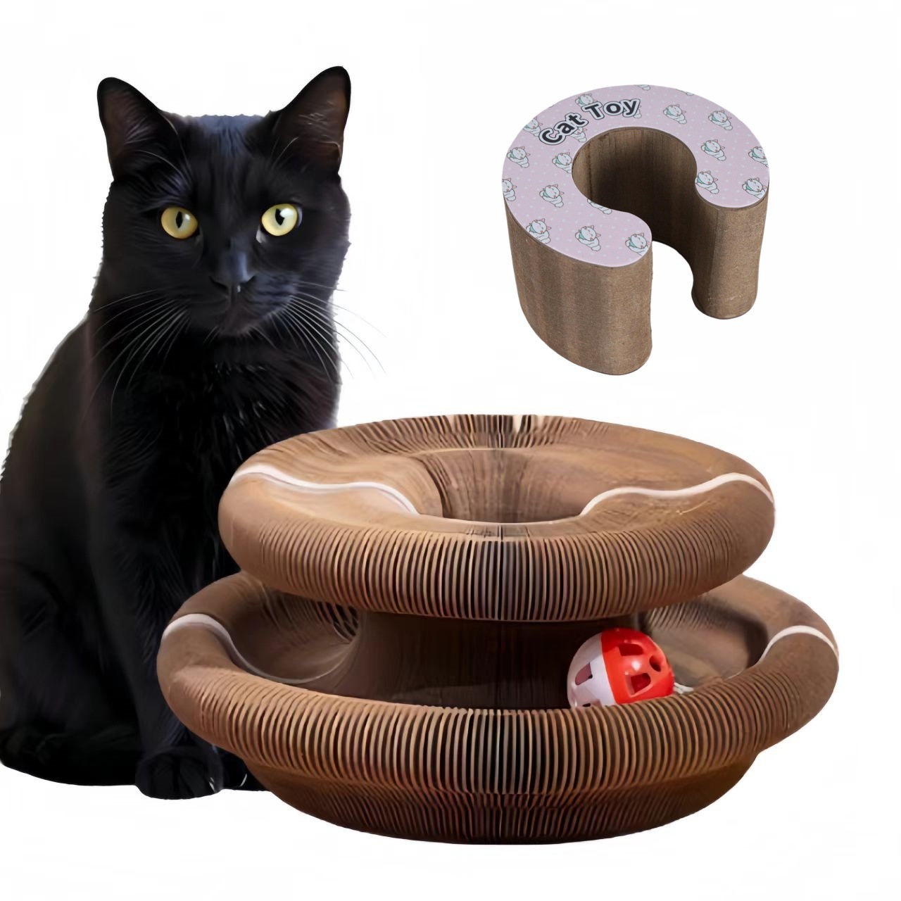 С-образная аккордеонная когтеточка для кошек с колокольчиком, игрушка для самосовершенствования, чтобы снять скуку, кошачье гнездо, точилка для когтей, кошачья лестница из гофрированного картона