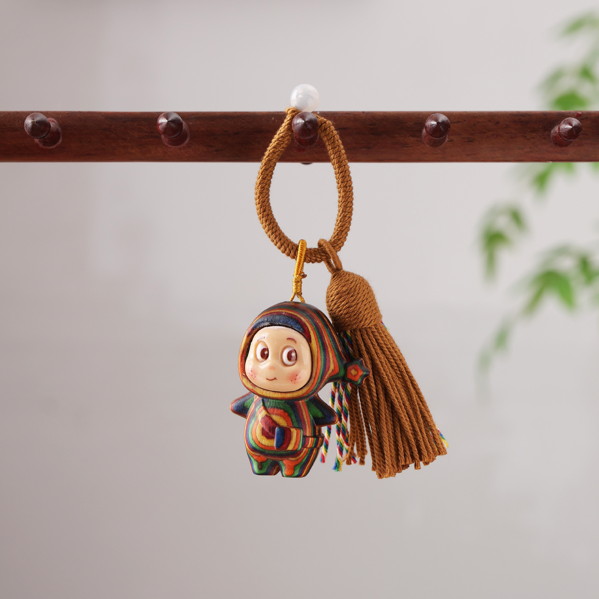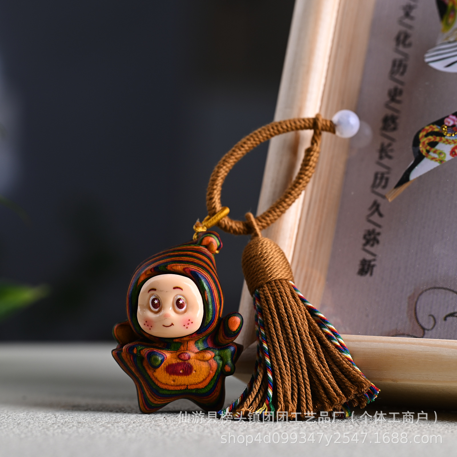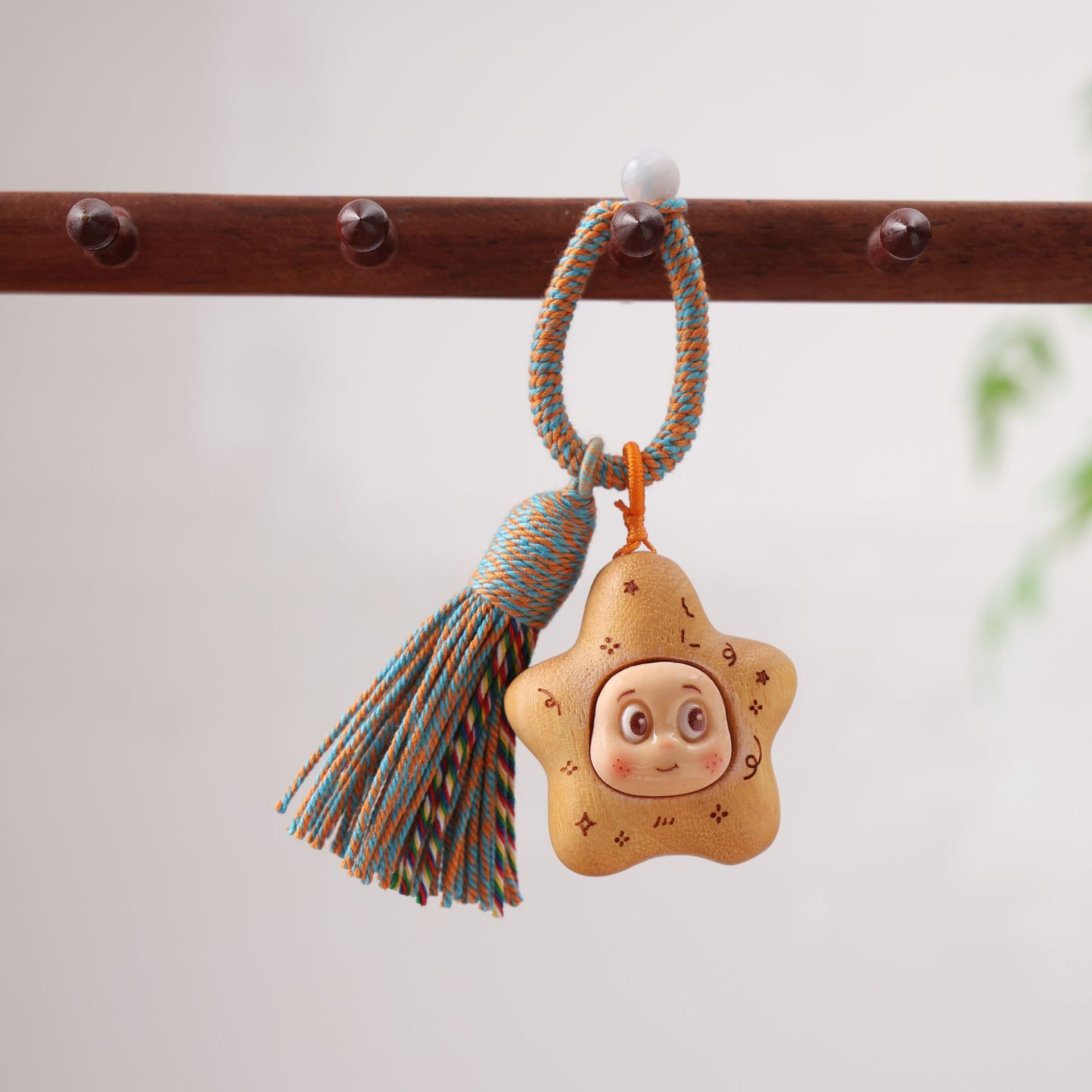 Брелок с игрушкой в виде звезды из радужного дерева, милый мультяшный аксессуар с кисточкой, значок для талии