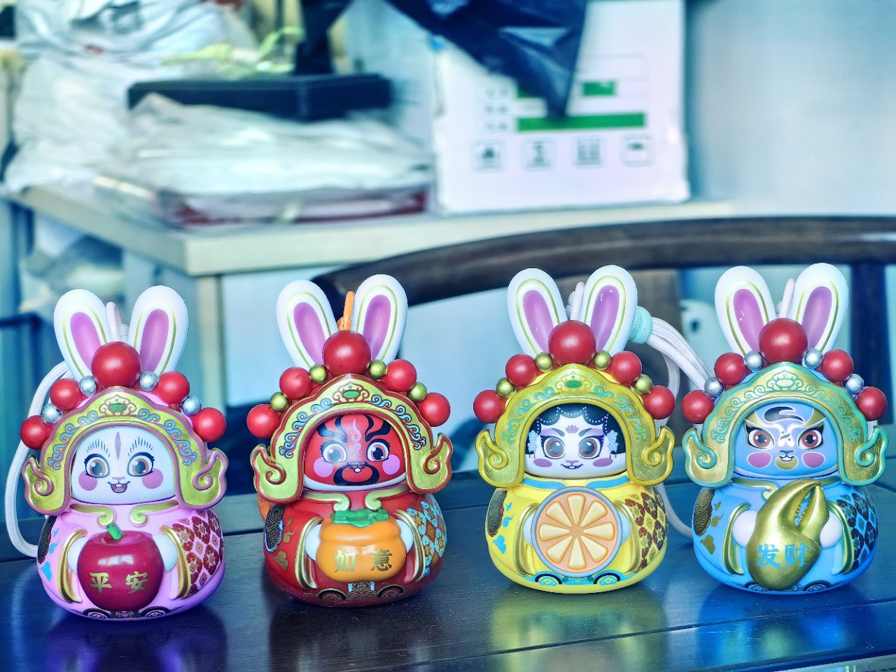 这个“北京兔爷变脸”是传统兔儿爷文化的创新设计,既保留了非遗元素,又增加了趣味互动~