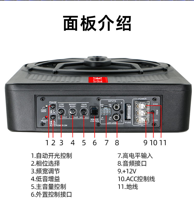 Ультратонкий автомобильный аудио супер сабвуфер модифицированный 12V активный сабвуфер 10 дюймов