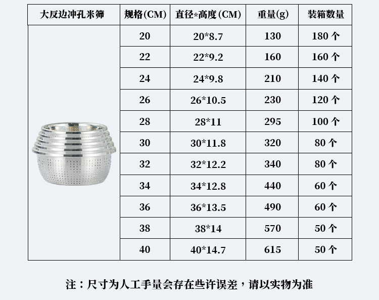 ![]() | Large reverse edge rice sieve | 20cm | ¥3.7 / ≈ 45 ₽ | 12750 | 5989303917519 | |
