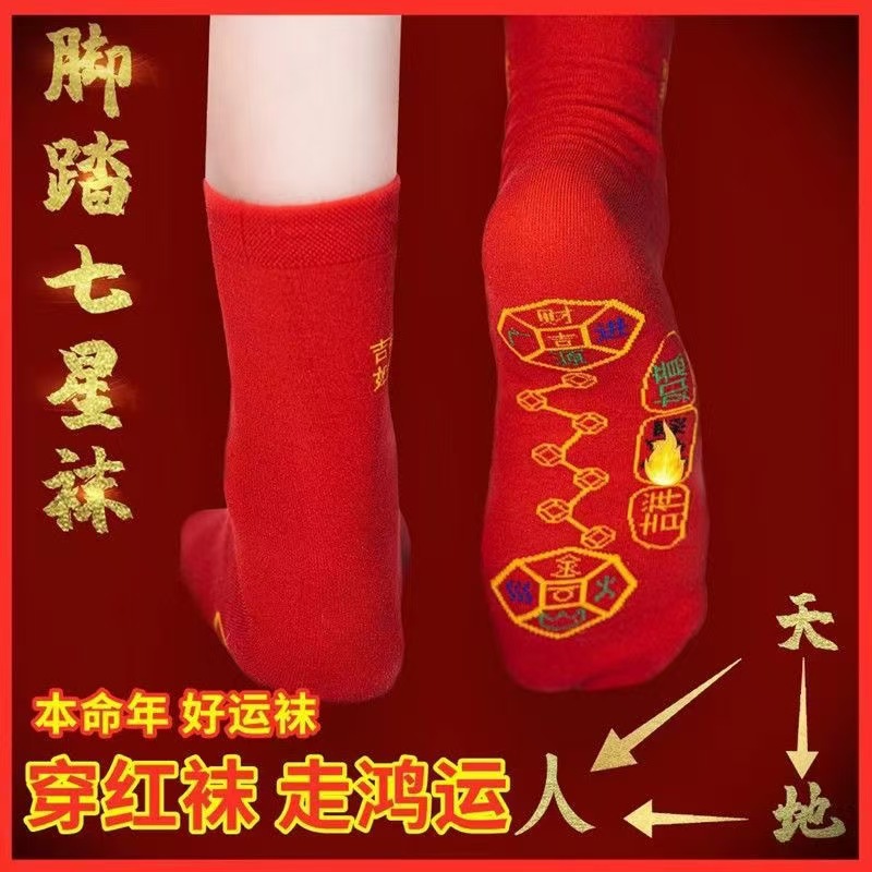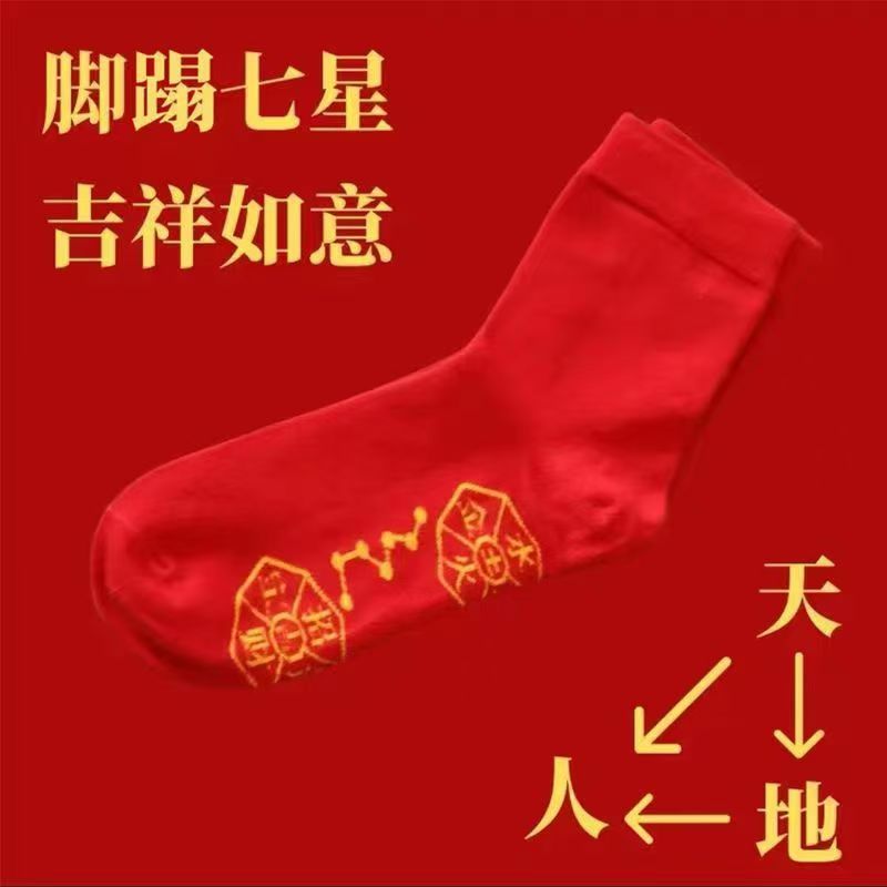 [Красные носки на год вашего рождения] Носки Семь Звёзд, дышащие, дезодорирующие и впитывающие пот красные носки для мужчин и женщин, новый стиль Douyin