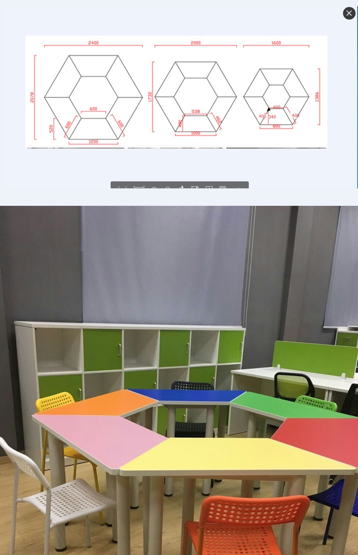 Комбинированный учебный класс для чтения и рисования, шестигранный стол с шестигранными партами и стульями