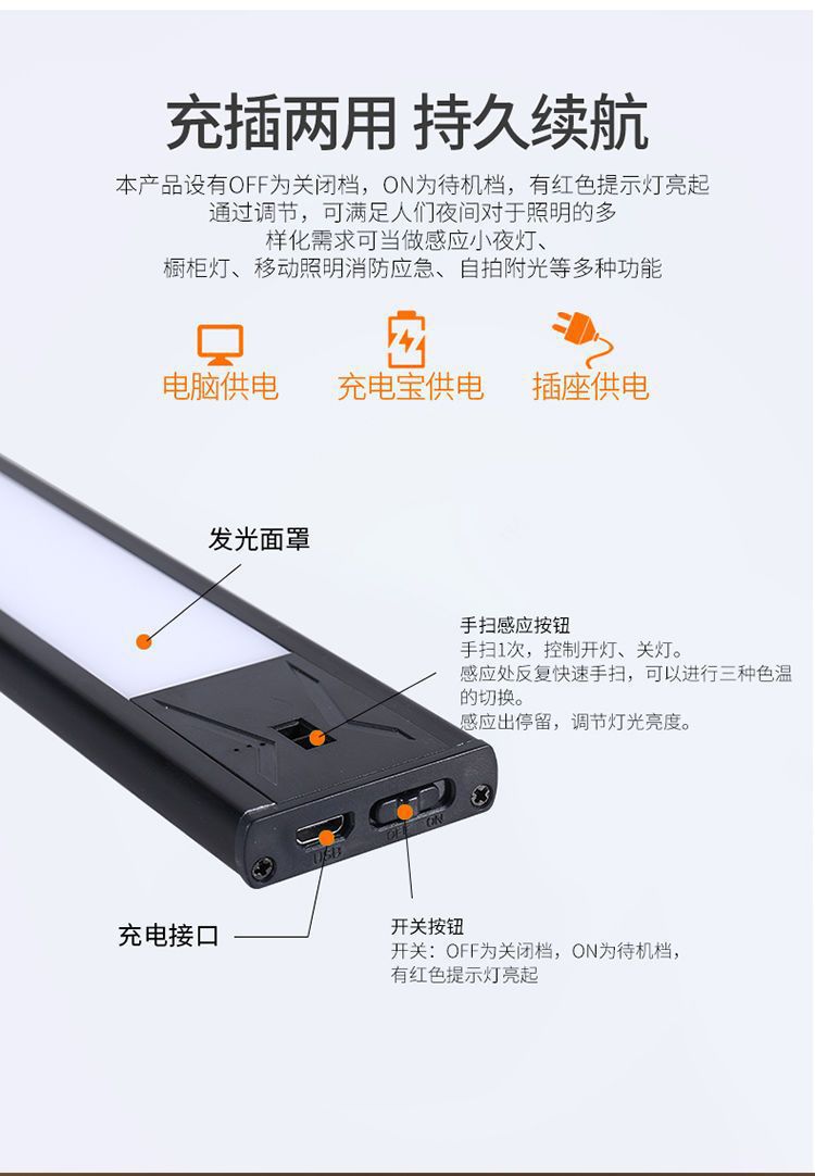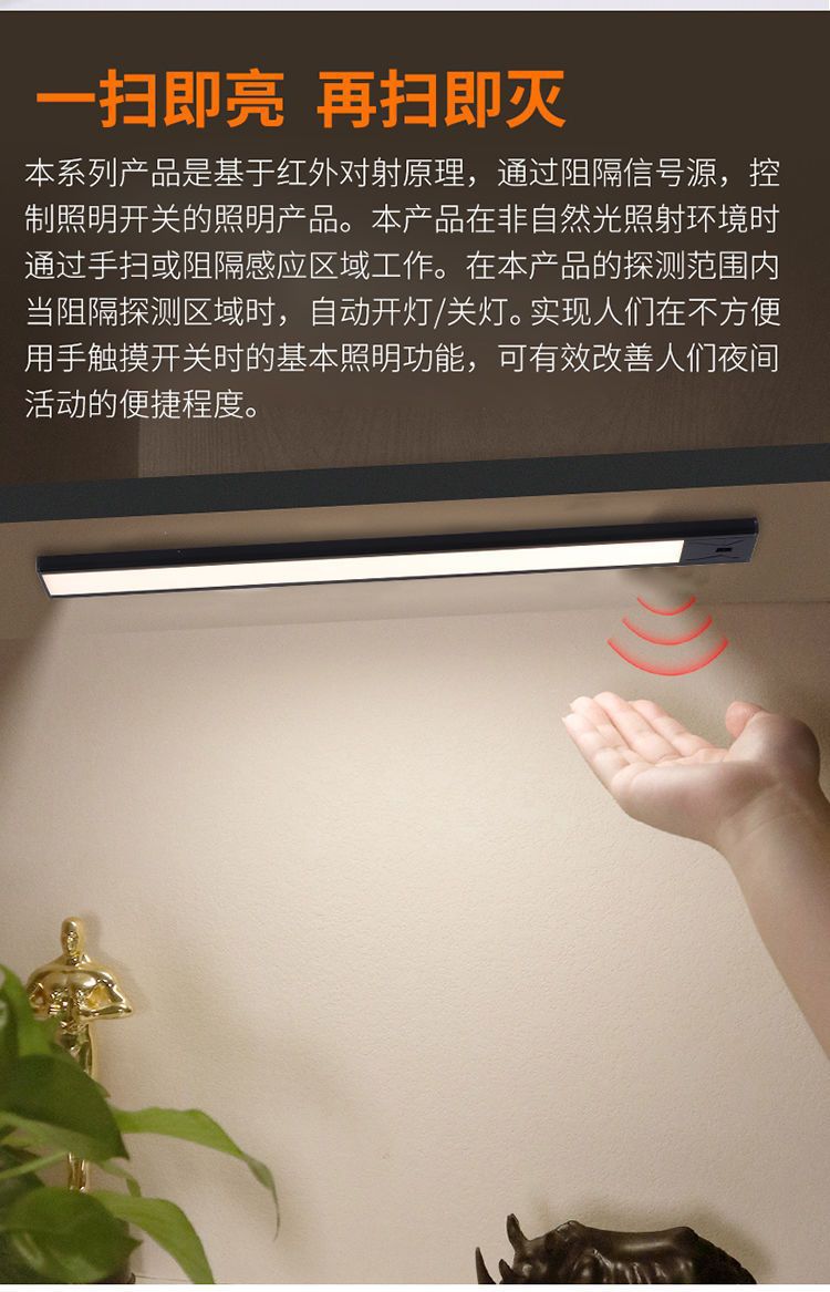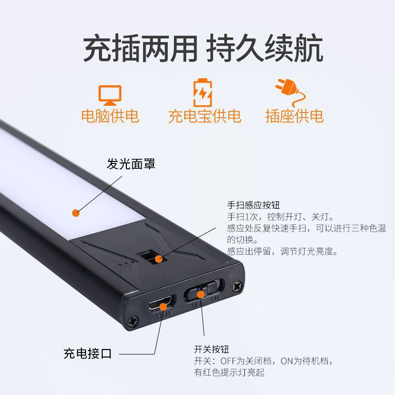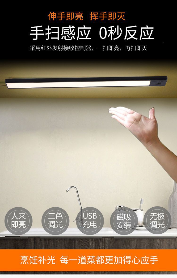 Светильник для шкафа с ручным сканированием, USB-зарядка, ночник с тремя цветами, портативная светодиодная лента