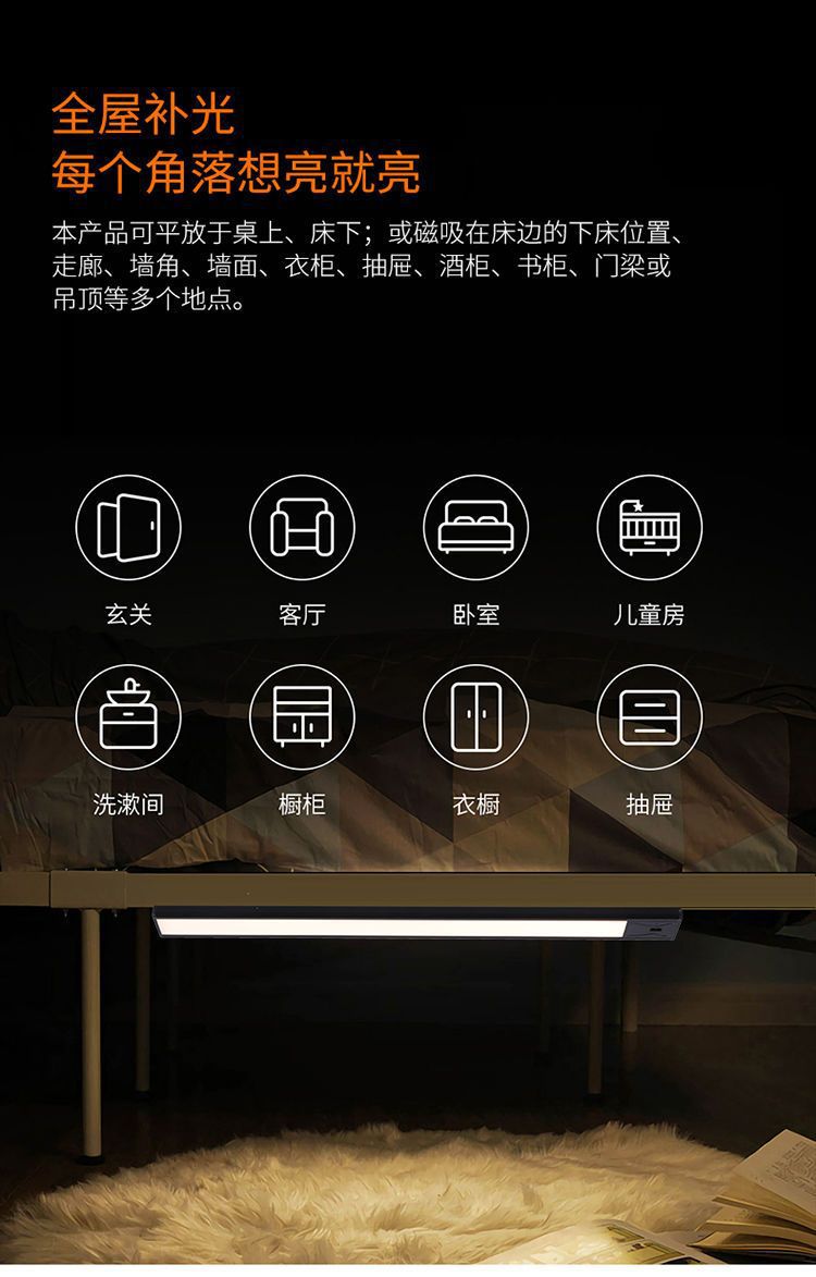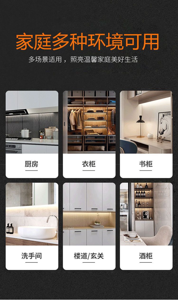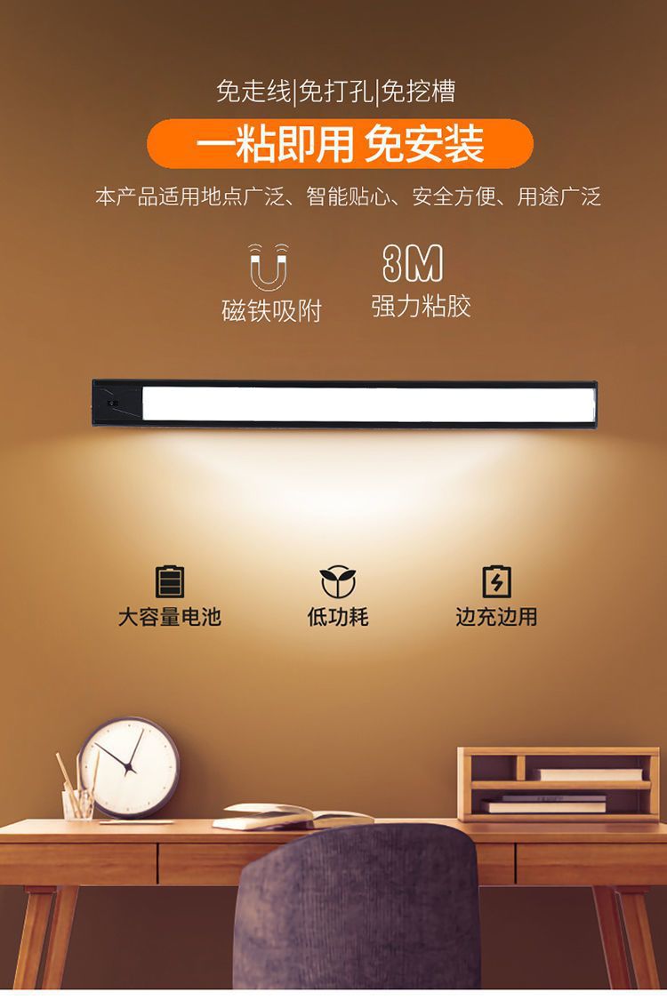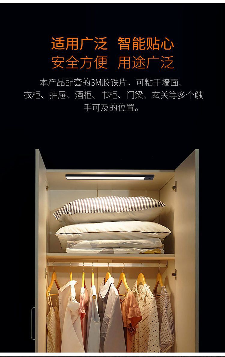 Светильник для шкафа с ручным сканированием, USB-зарядка, ночник с тремя цветами, портативная светодиодная лента