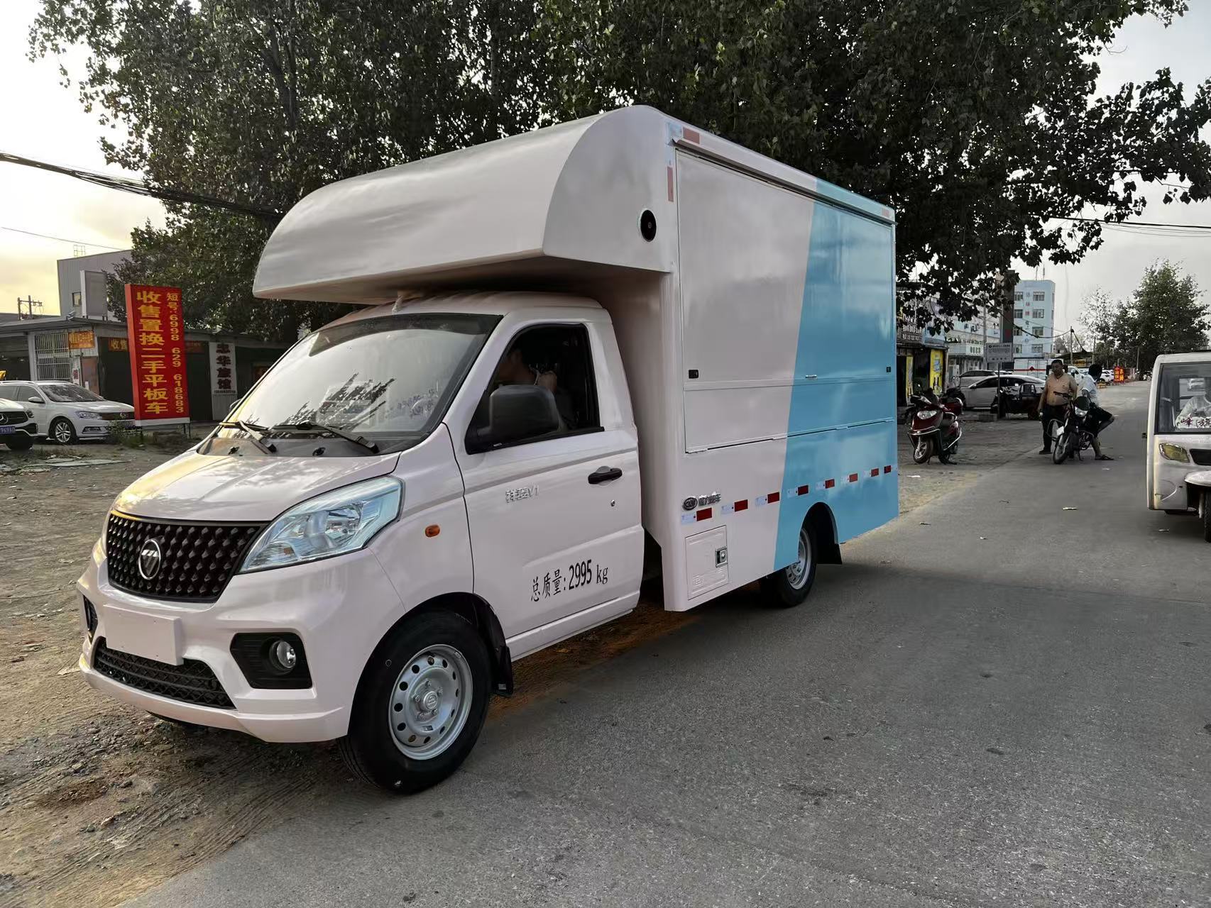 流动售货车主要作用流动售货车可以停放在休闲广场、步行街口、车站、码头、校园、庆典活动现场、体育场馆、旅游景点等场所,还可以开到郊外乡镇赶场。