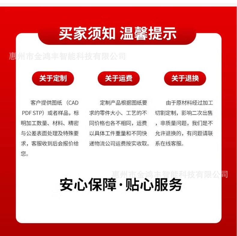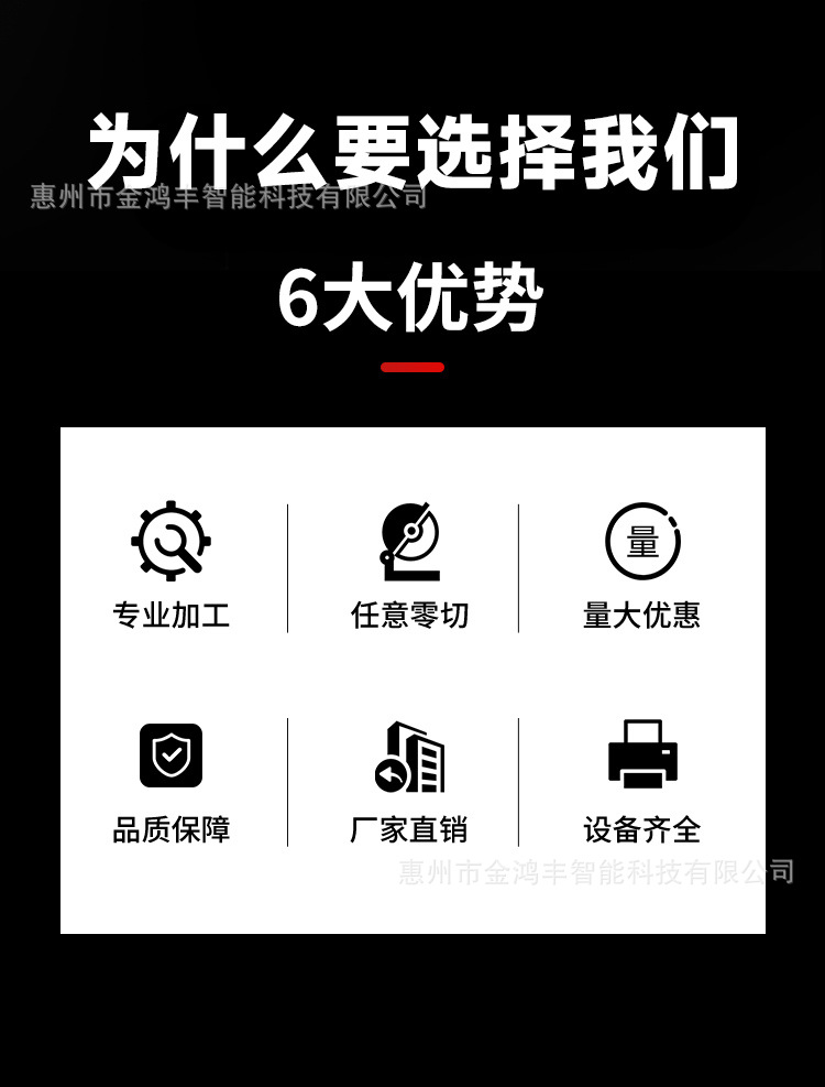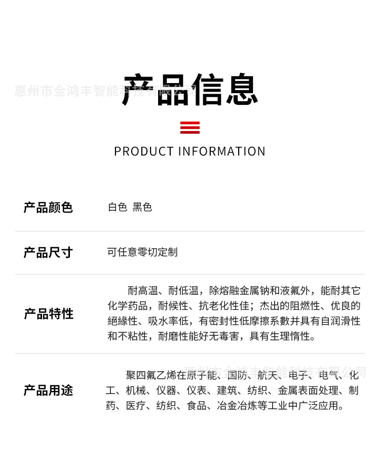 惠州金鸿丰智能科技有限公司是一家专业加工、生产、销售的企业。主营生产销售:工程塑料,绝缘材料。产品包括:铁氟龙、电木板、PEEK、 优力胶、3240环氧板、FR-4板、合成石、冷冲板、尼龙板、亚克力板、POM板、PVC板、PP板、PU板、PC板及棒材。我们公司拥有专业加工和开料设备及专业配送服务团队,我们宗旨:急客户所急、供客户所需,尽最大的努力去服务解决我们尊贵的客户长期的需求!(同城可当天上门配送服务)期待成为您的战略伙伴!