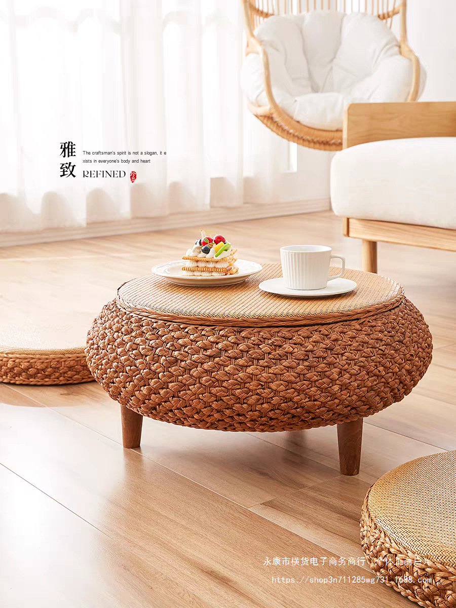 Кофейный столик в стиле татами для эркера, маленький стол, столик канг для спальни, простой в использовании, низкий стол для подоконника, плетеный из ротанга с хранением