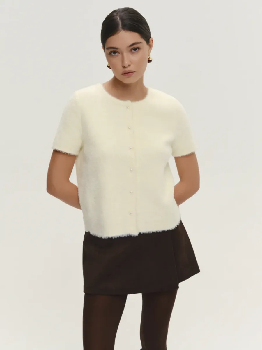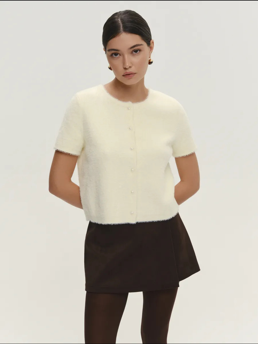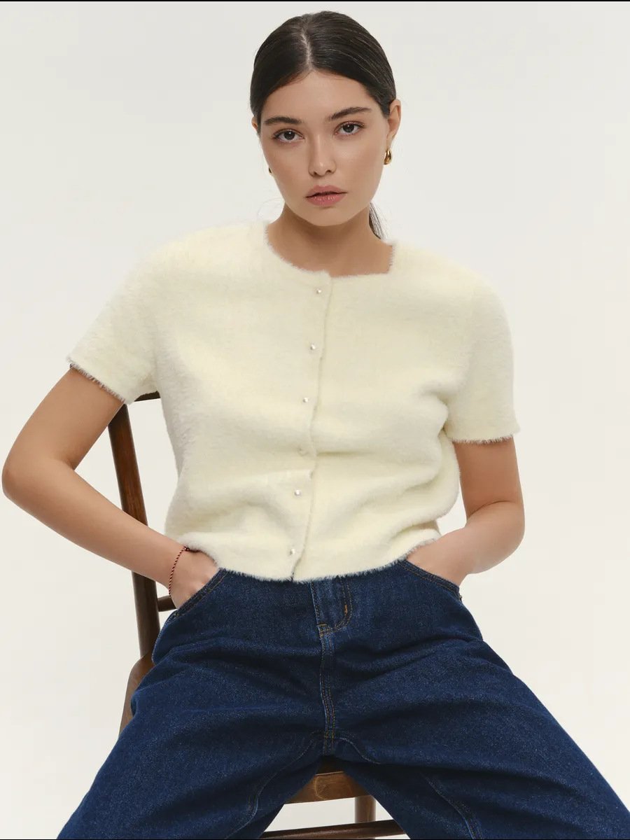 Кросс-бордерный короткий рукав, имитация мускусного свитера, кардиган для женщин, новый весенне-осенний высококачественный плюшевый топ, однотонный вязаный жакет