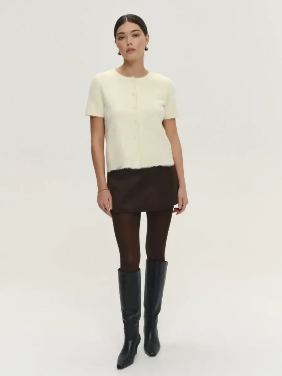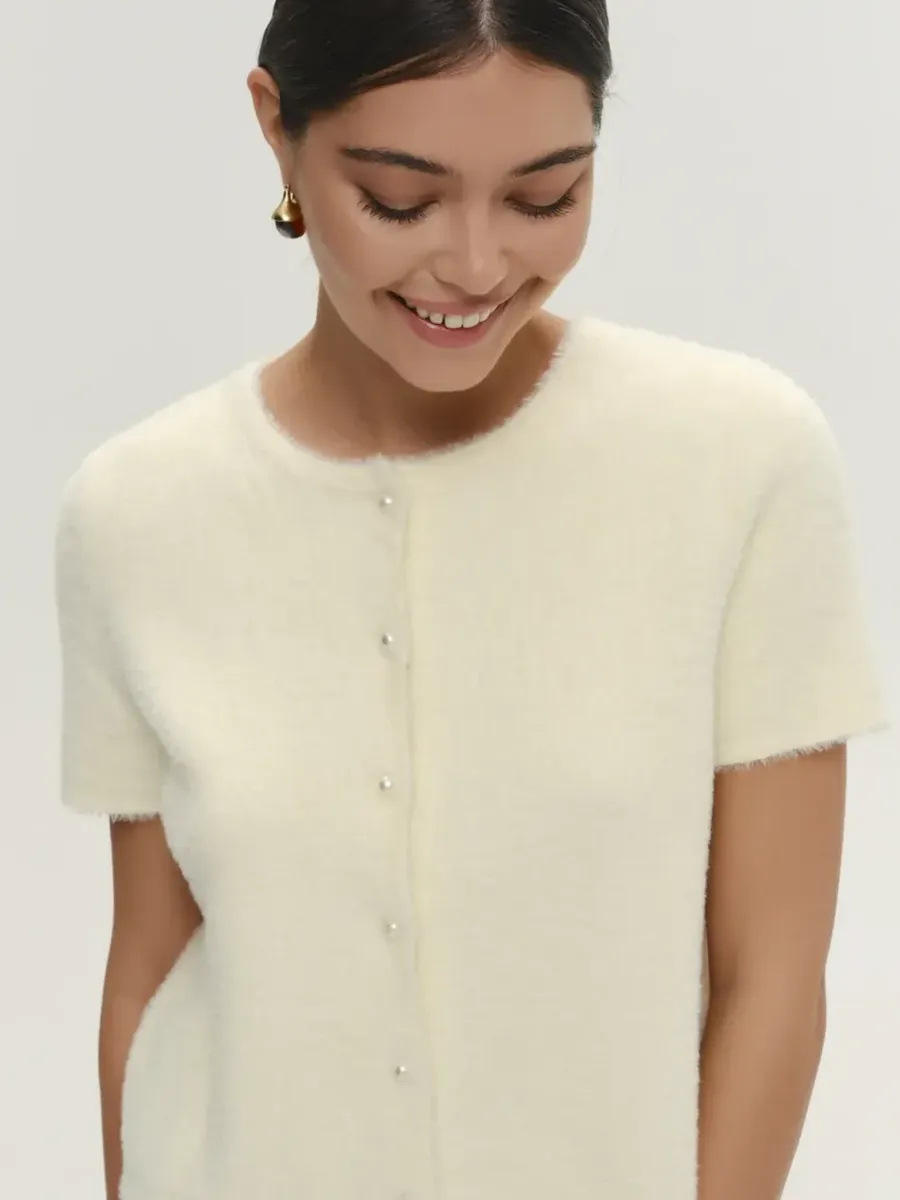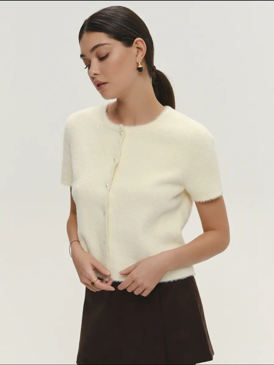 Кросс-бордерный короткий рукав, имитация мускусного свитера, кардиган для женщин, новый весенне-осенний высококачественный плюшевый топ, однотонный вязаный жакет