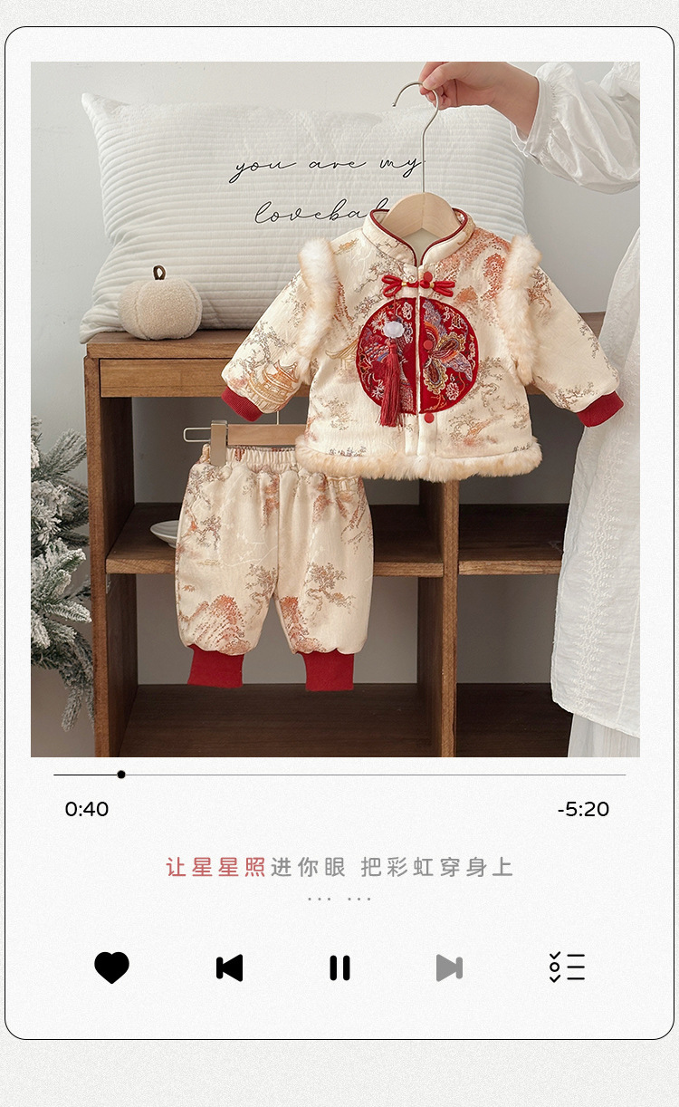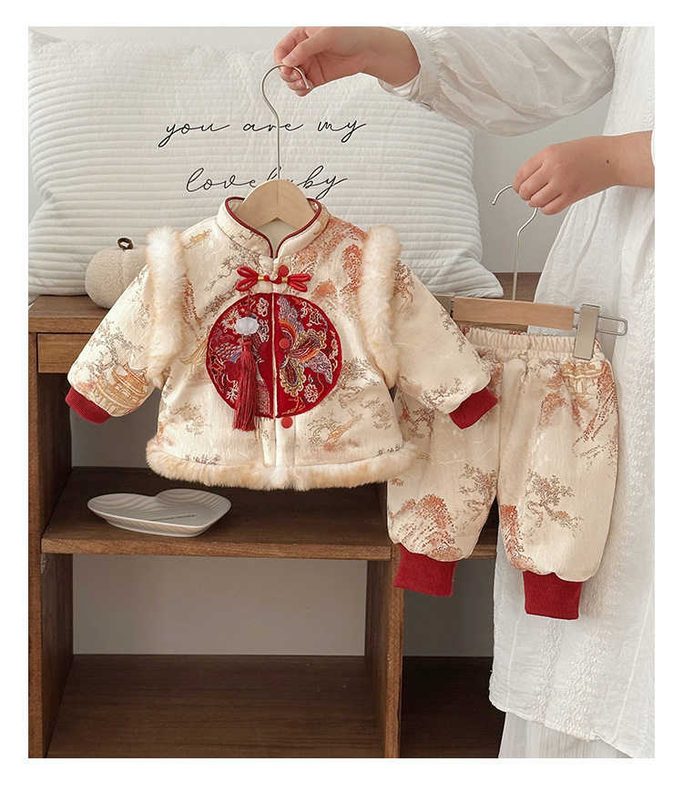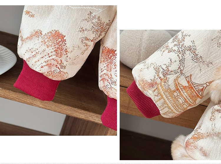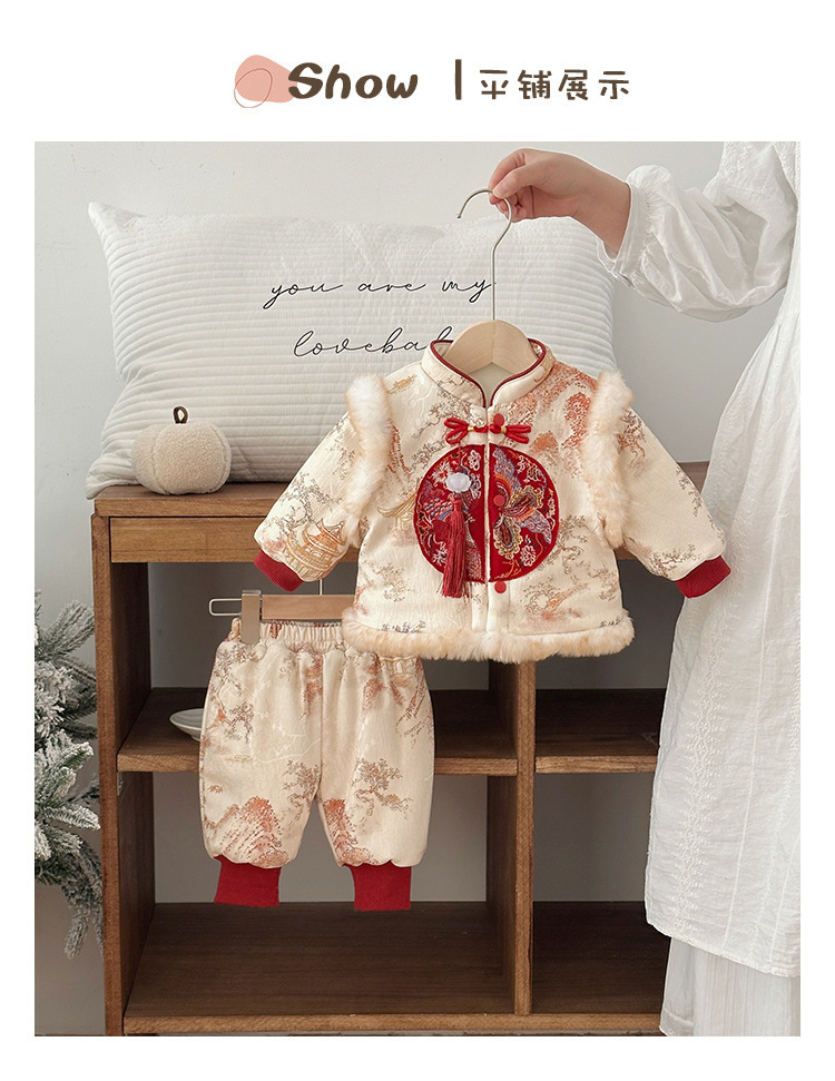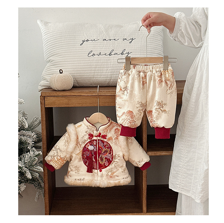 Одежда для младенцев и детей, осенне-зимние хлопковые вещи, новогодняя одежда для годовасиков, утолщенный комплект с пейзажем