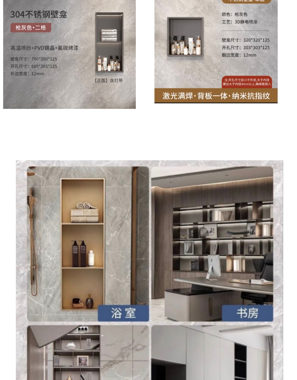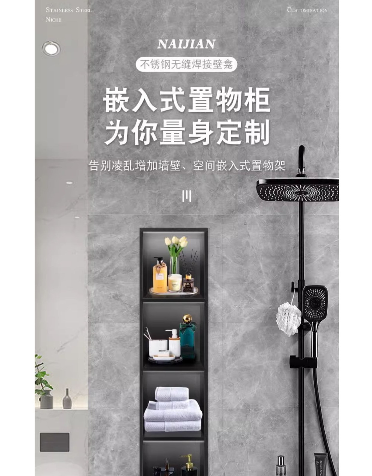 Ниша для ванной из нержавеющей стали 304, встроенная ниша для хранения, шкаф для телевизора из нержавеющей стали