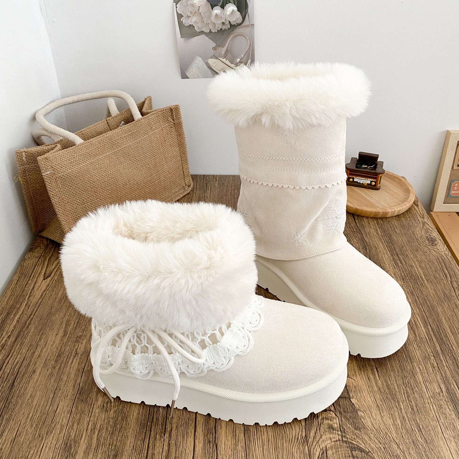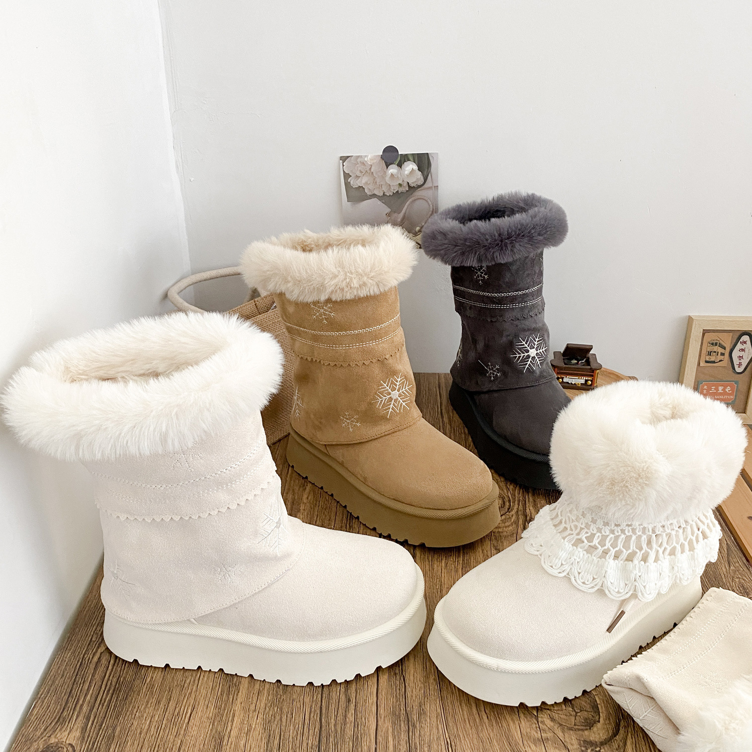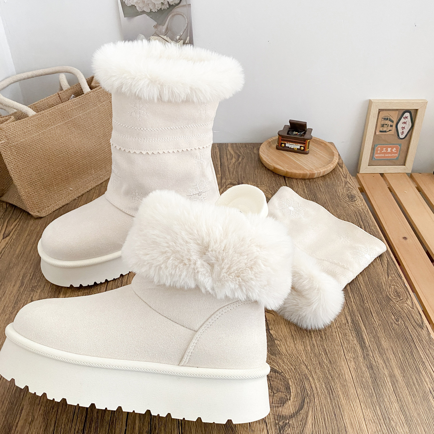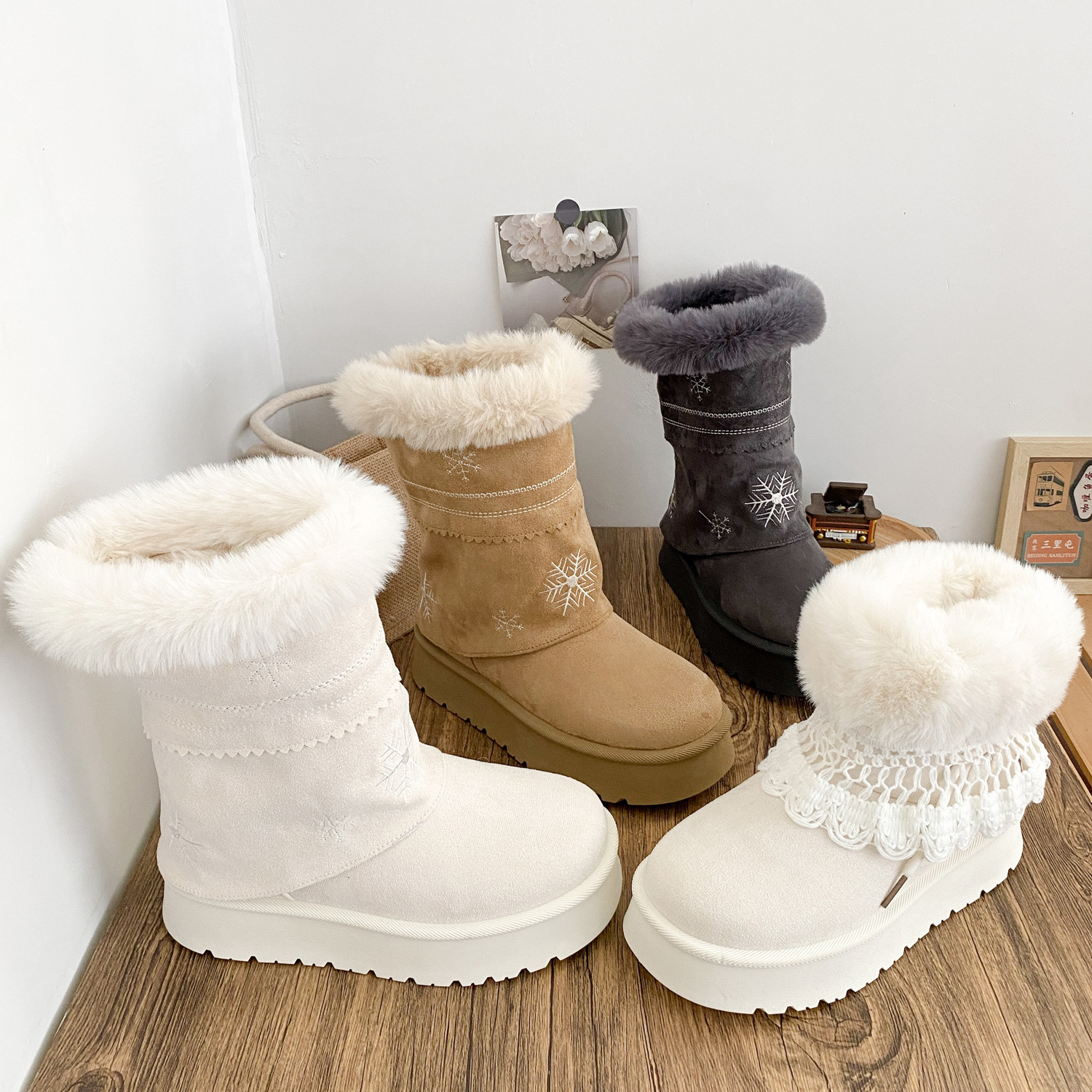 A6099-1 снежные ботинки двойного назначения с утолщенной подошвой женские ботинки 2025 новые зимние теплые белые ботинки большие хлопковые ботинки