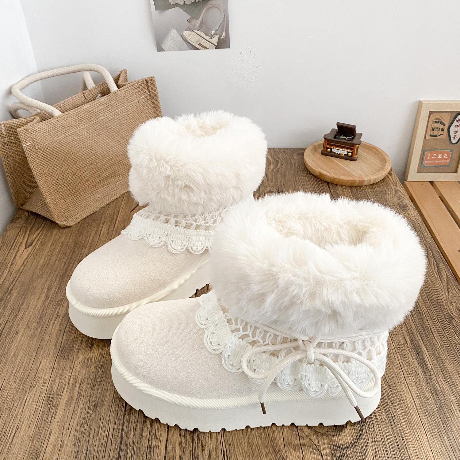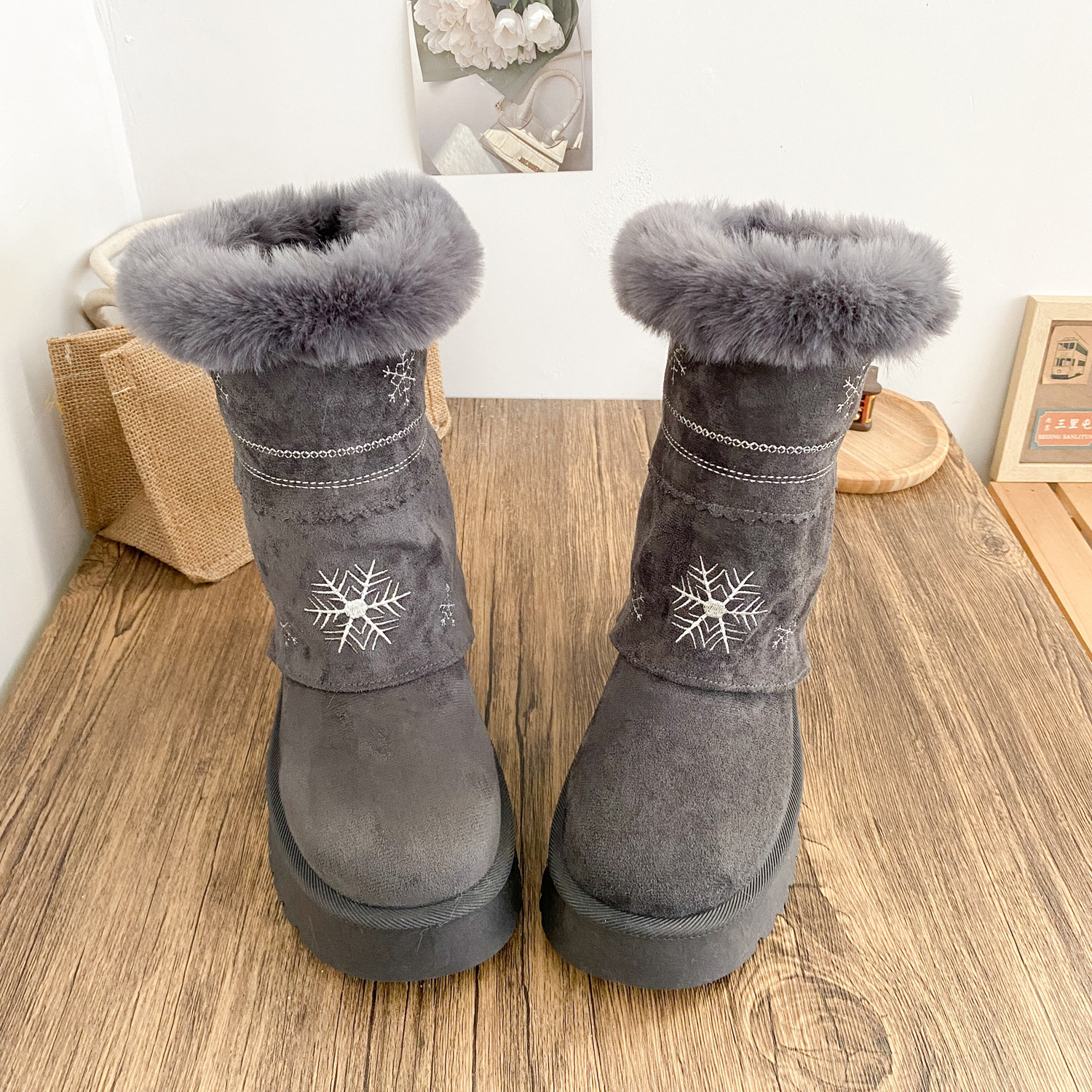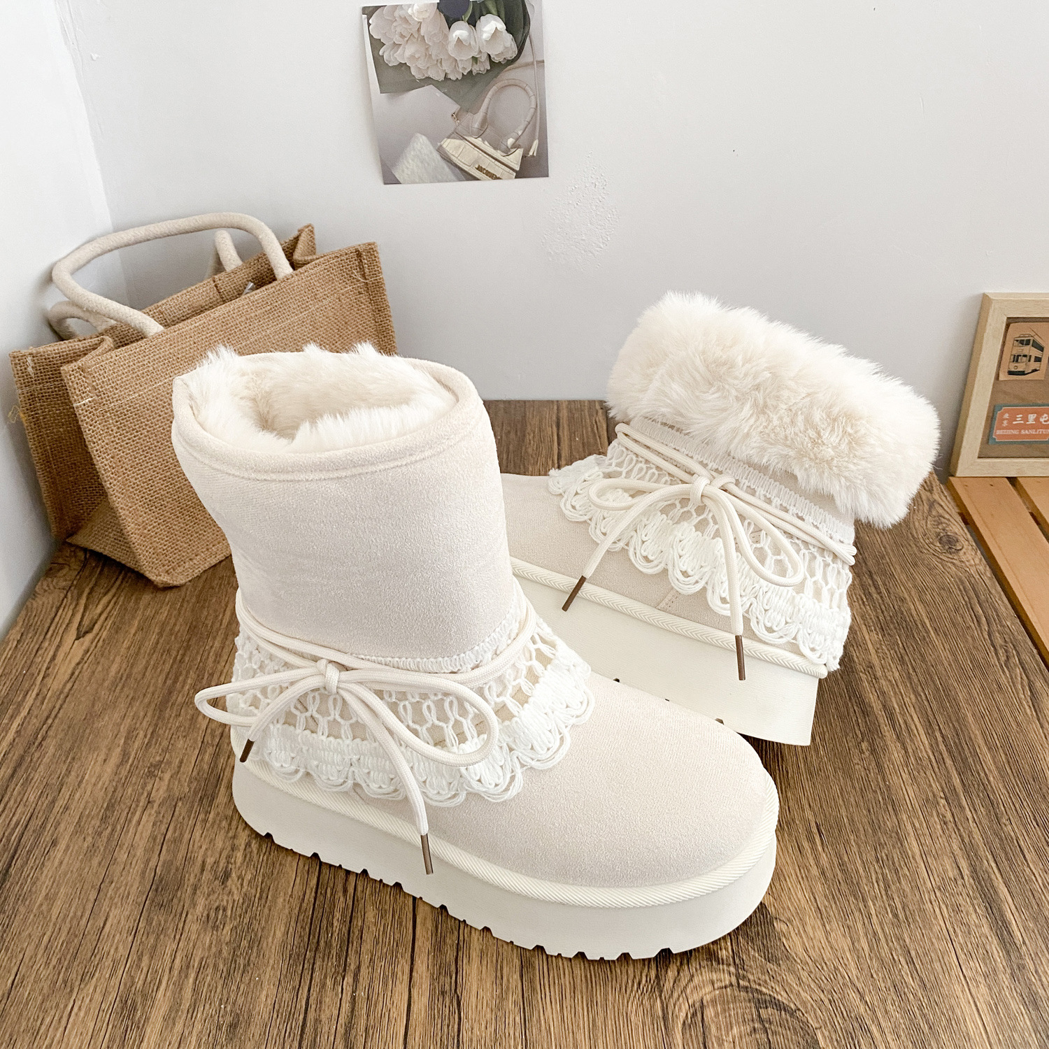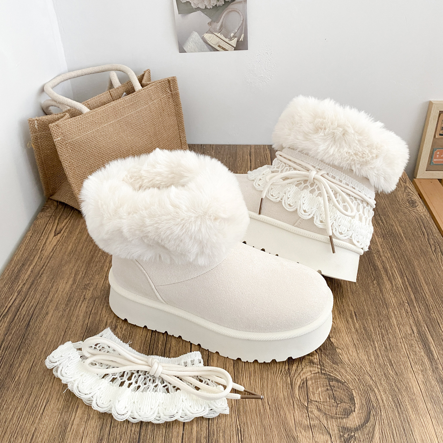 A6099-1 снежные ботинки двойного назначения с утолщенной подошвой женские ботинки 2025 новые зимние теплые белые ботинки большие хлопковые ботинки