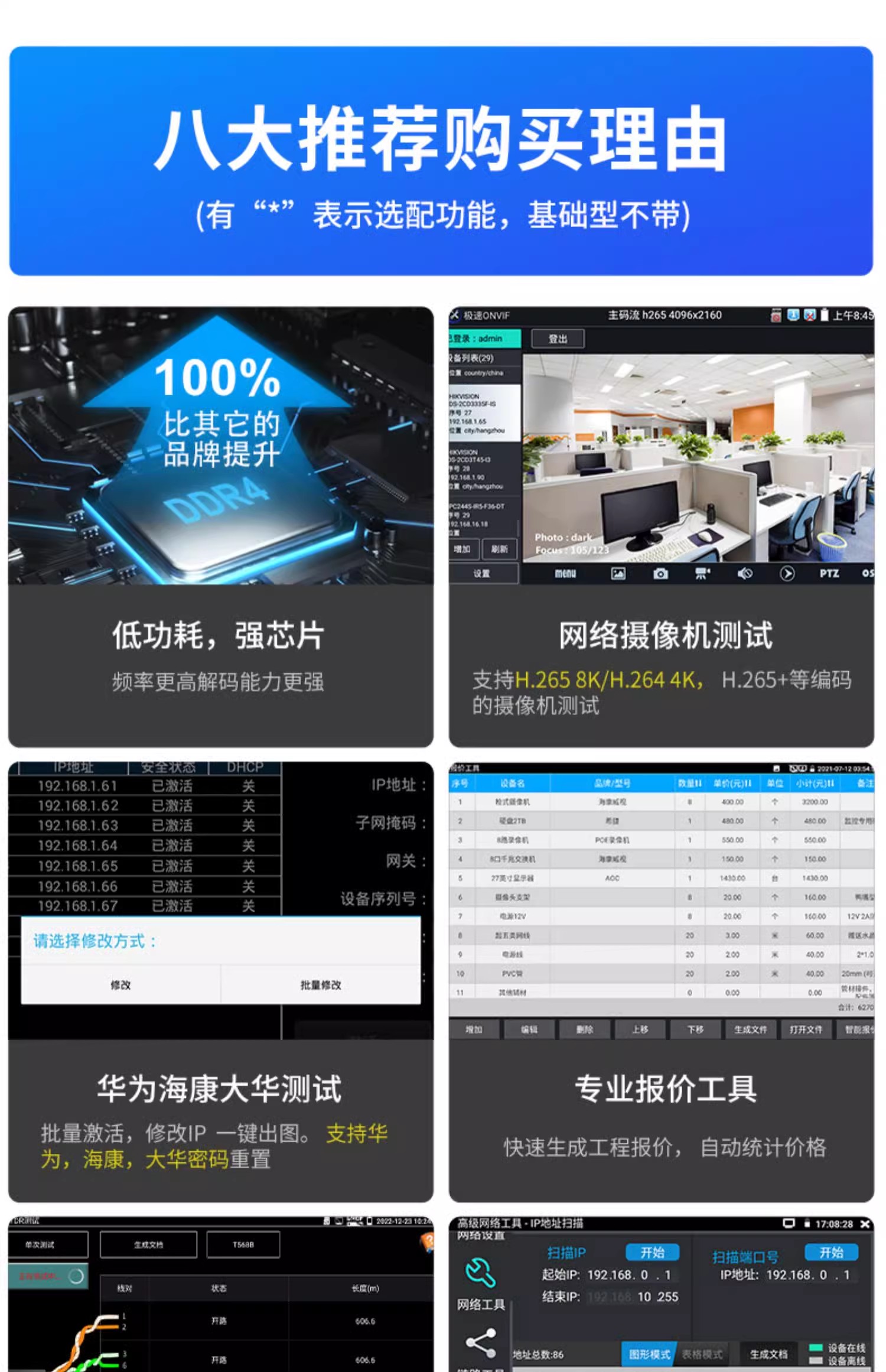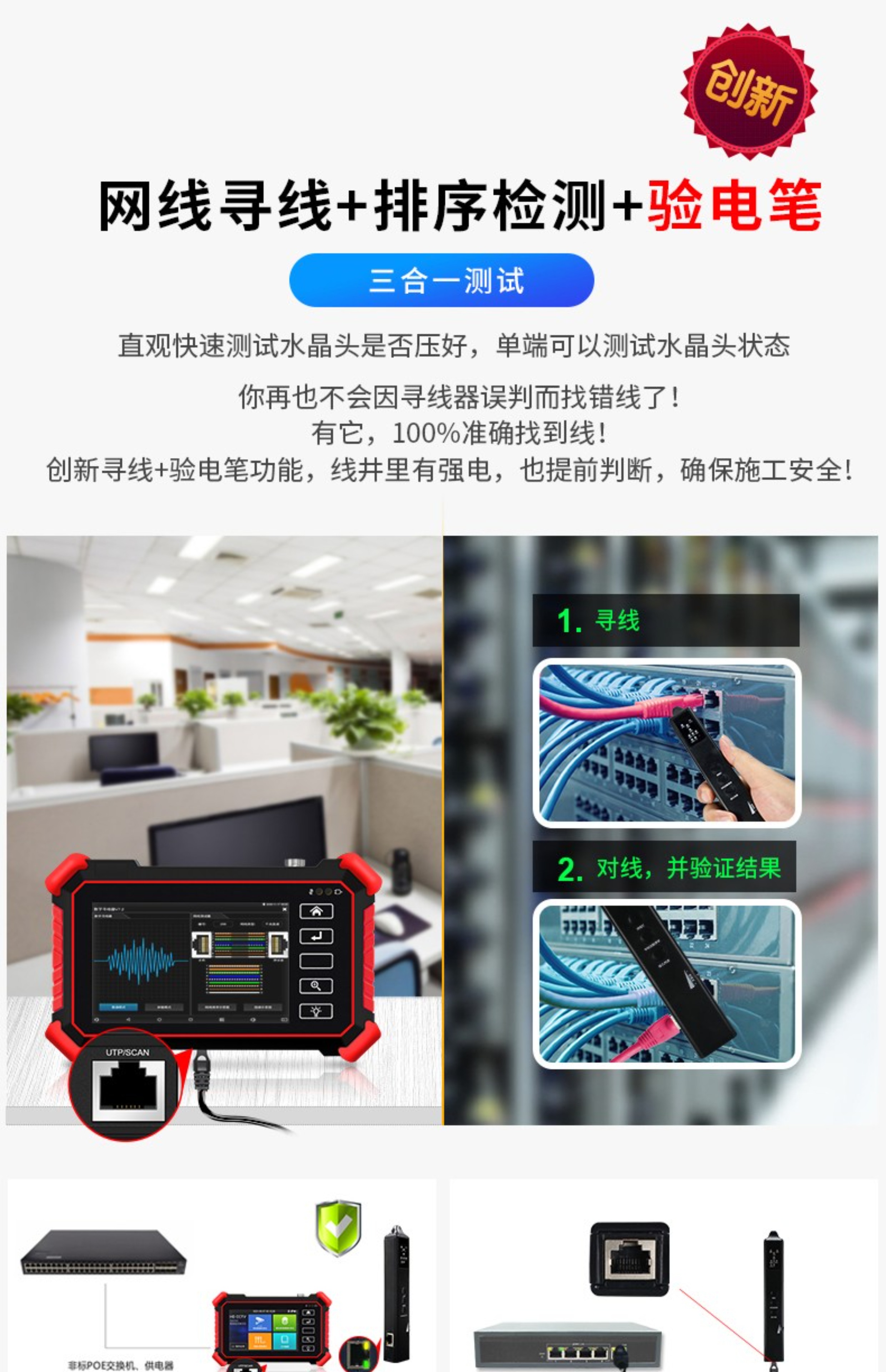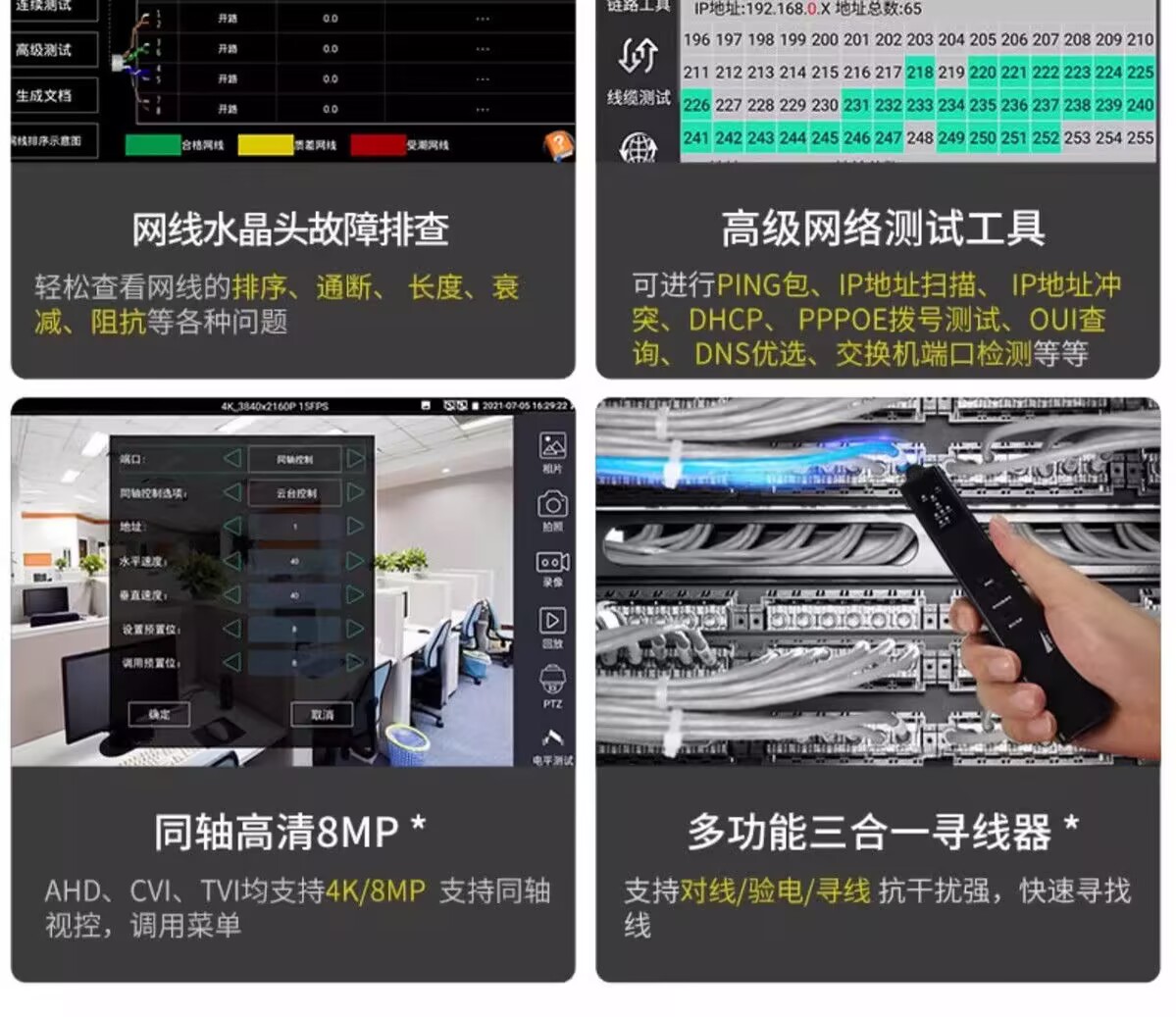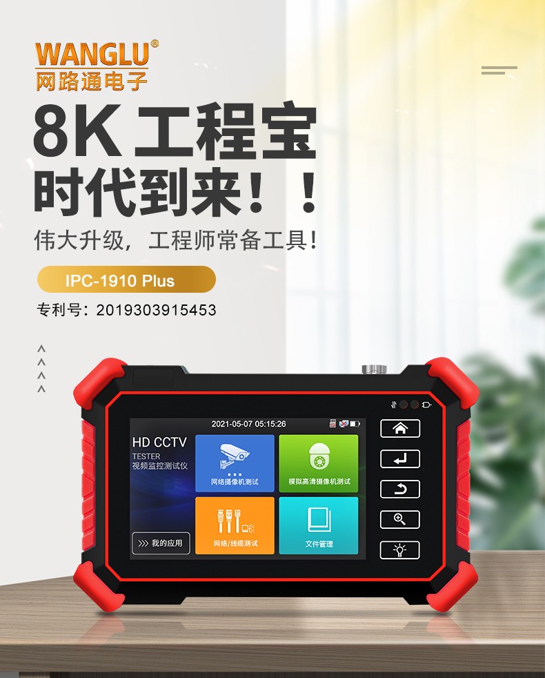 Сетевой камерный инженерный тестер Ipc1900/1910 для видеонаблюдения 8K тест сетевого кабеля Tdr с Poe