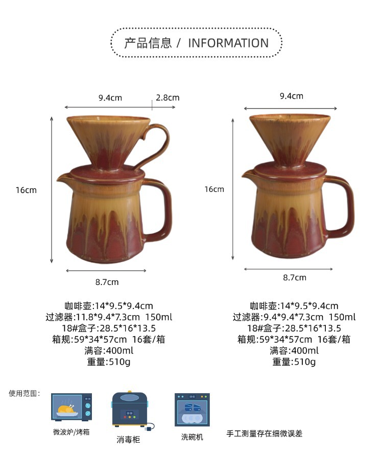![]() | 1 | 509 small coffee pot set (kiln brown) 400ml | ¥39.0 / ≈ 475 ₽ | 2000 | 6149909579681 | |