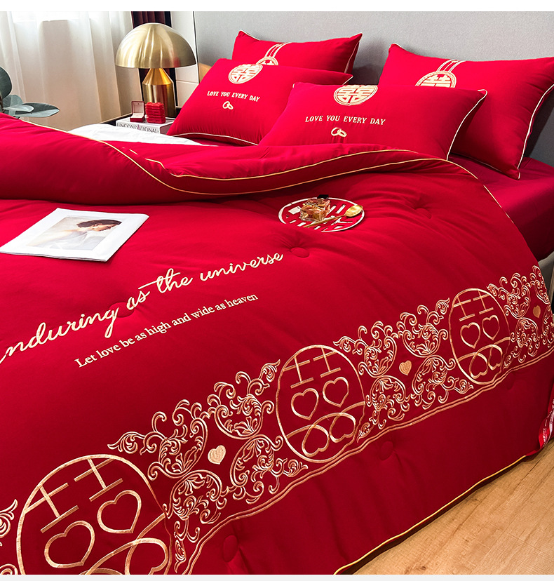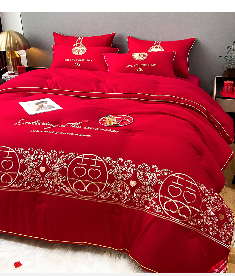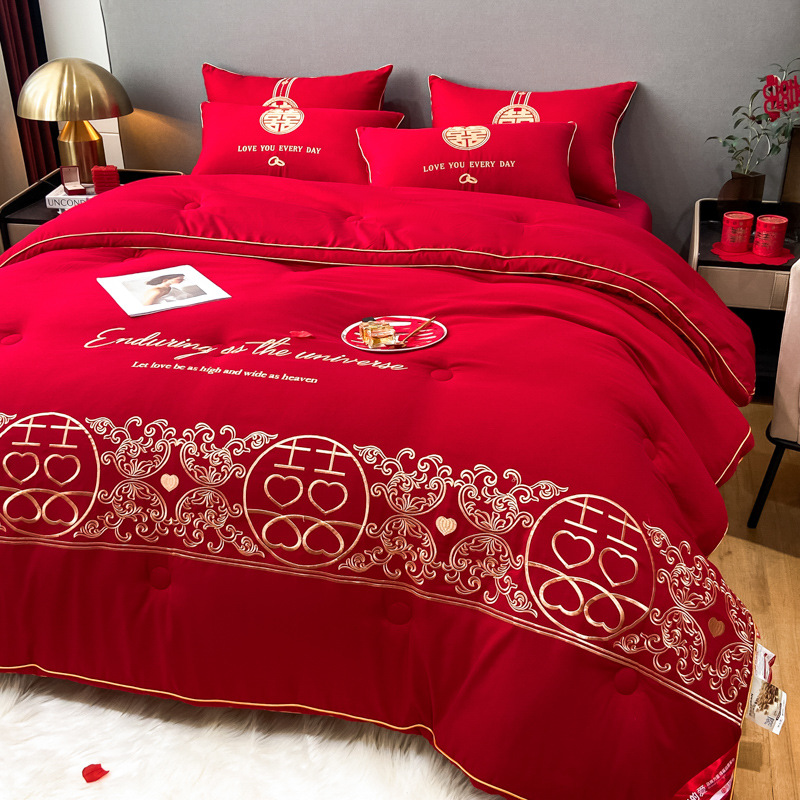 Свадебный комплект, красное одеяло, простыни, вышитый чехол, новое свадебное приданое