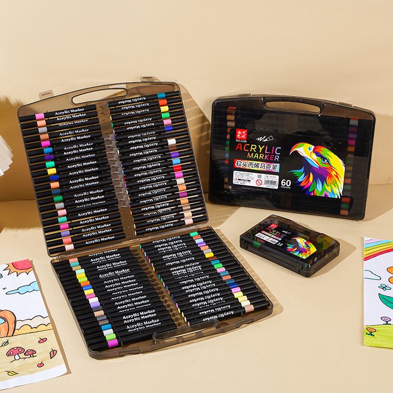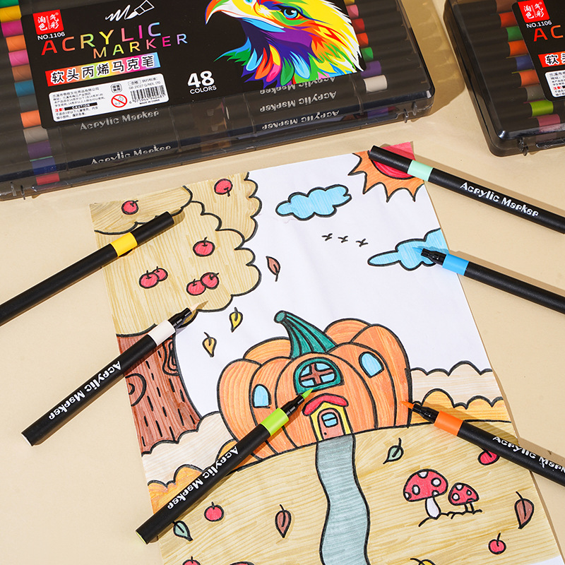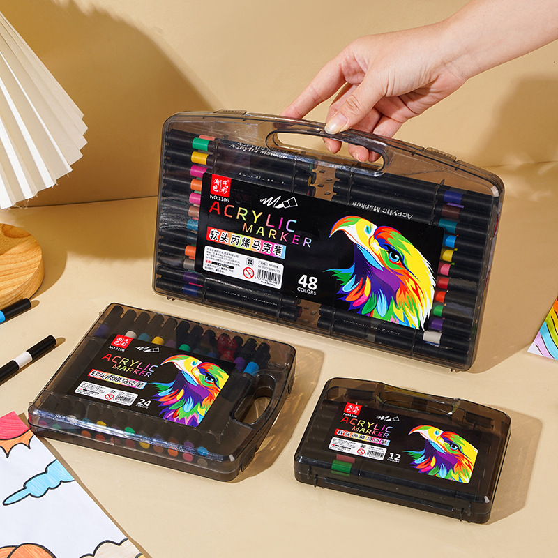 Маленькая черная коробка, мягкий акриловый маркер для учеников начальной школы, непрозрачные цвета, штабелируемые, детские акварельные маркеры для DIY