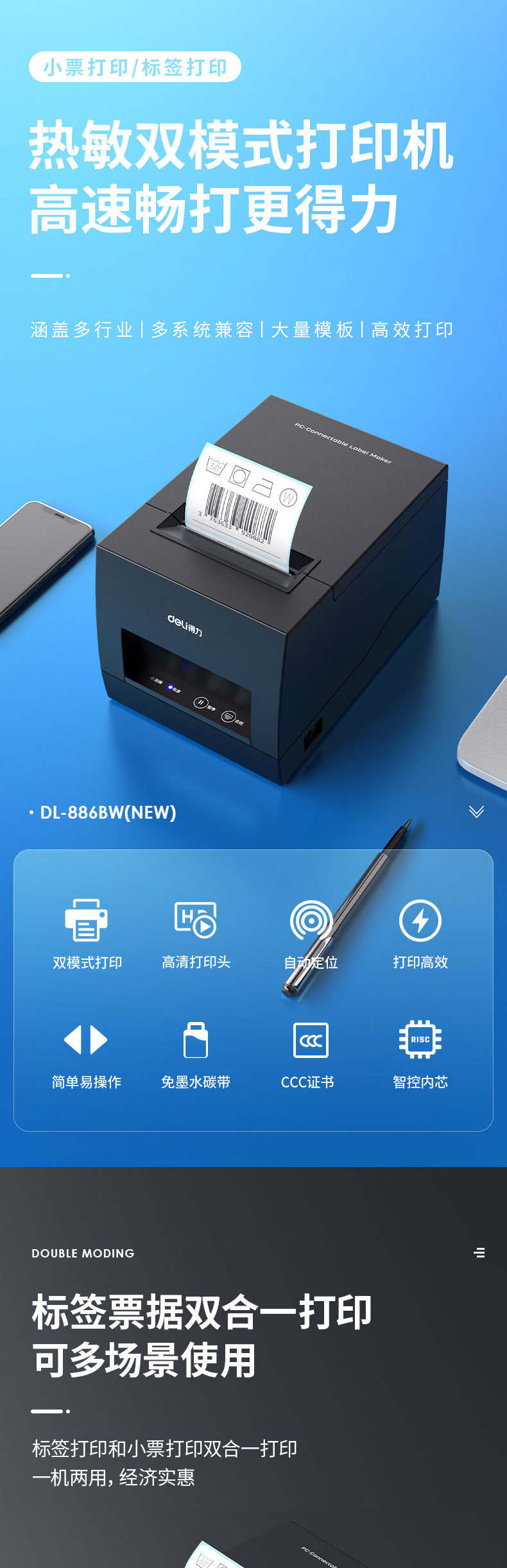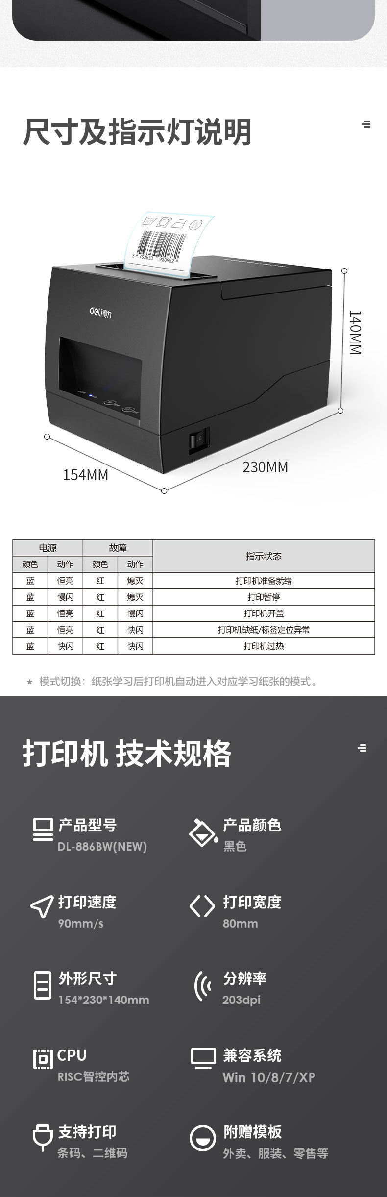 ![]() | Deli dl-886bw 3inch bluetooth label printer (black) | ¥299.0 / ≈ 3 606 ₽ | 1 | 5984738433936 |