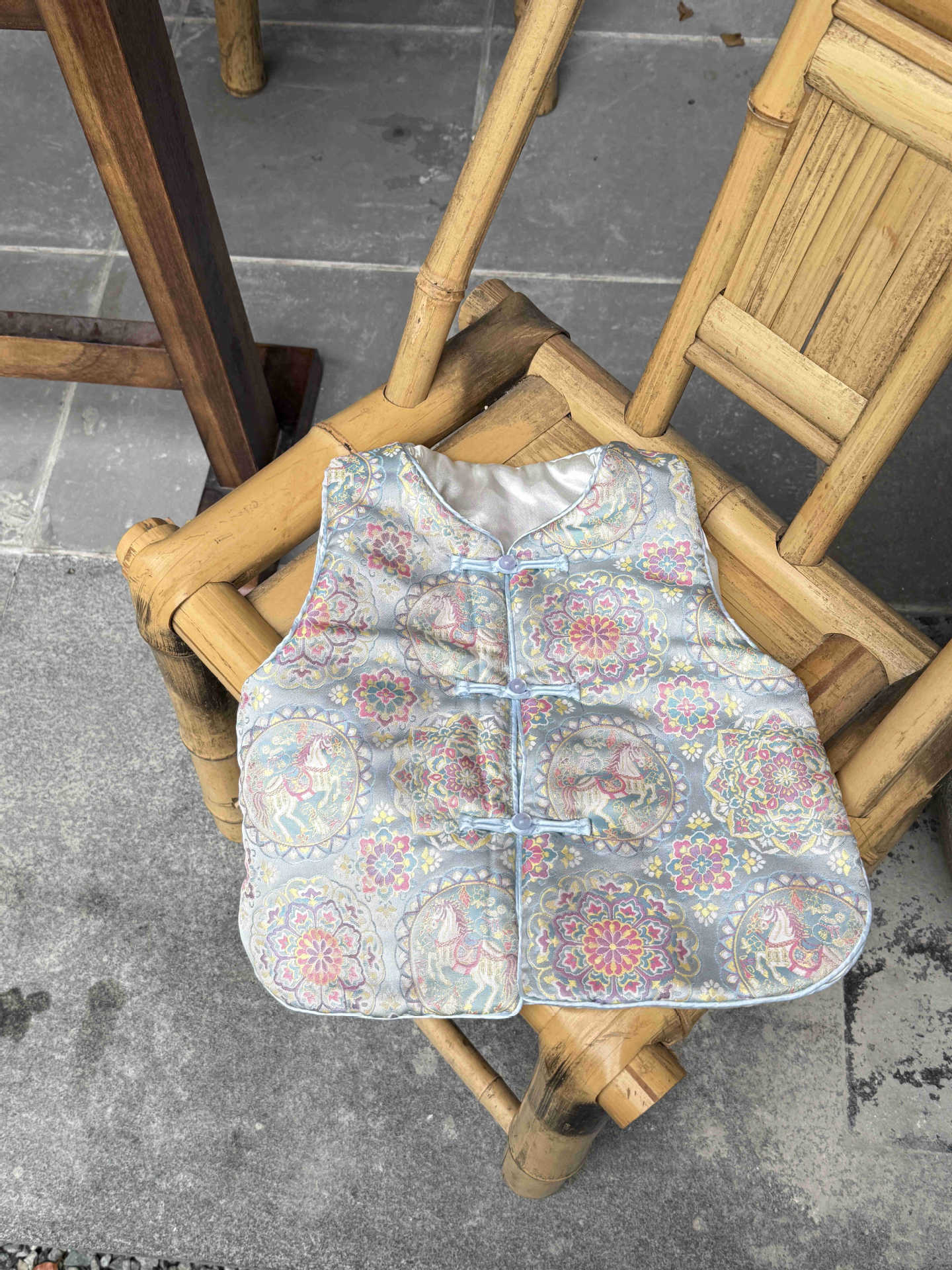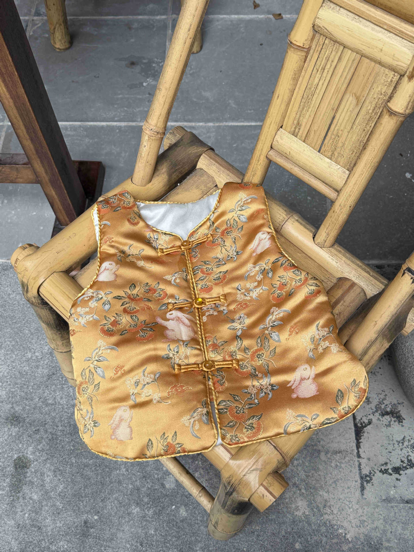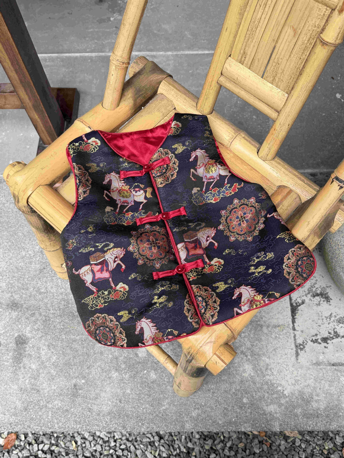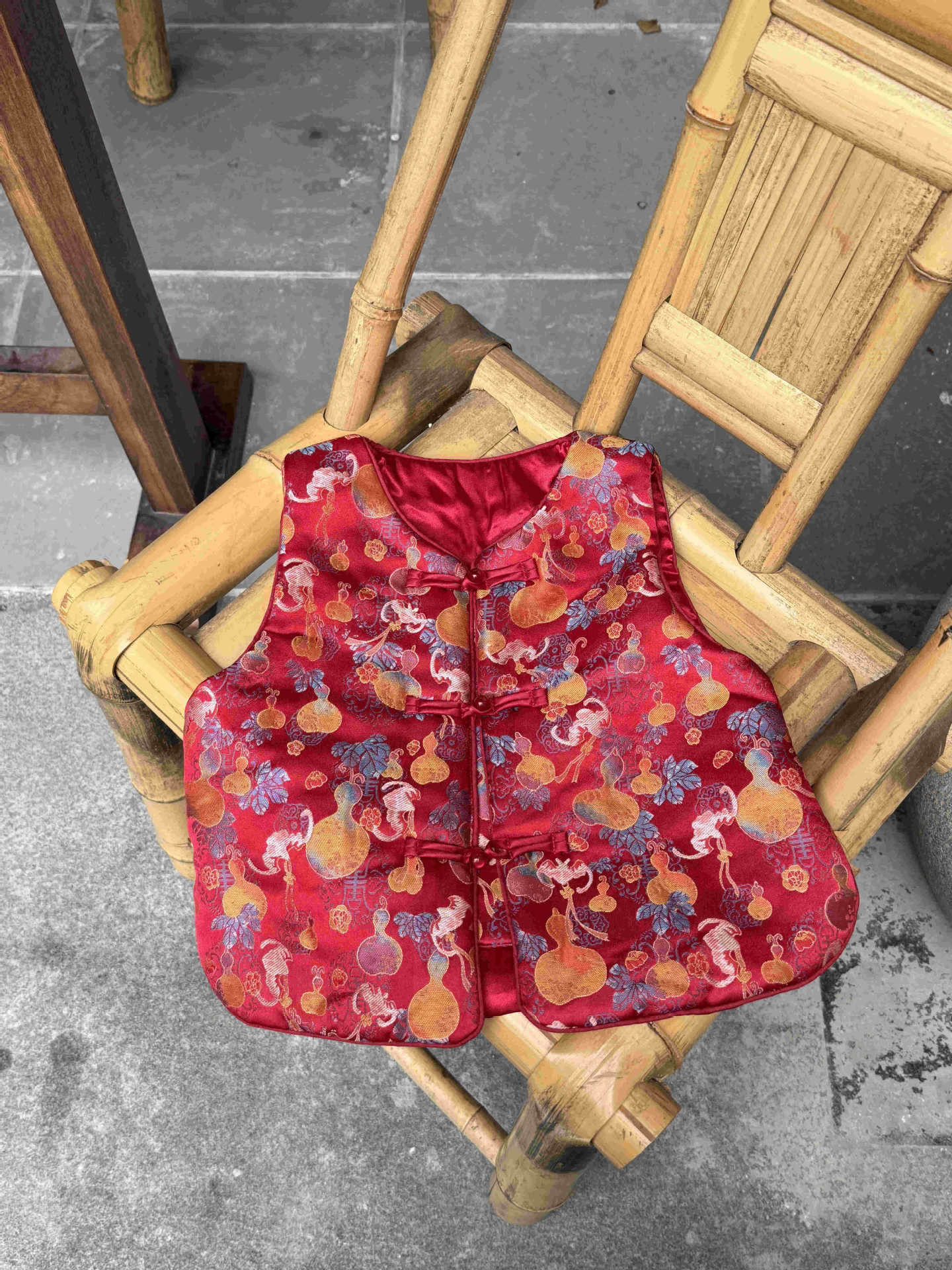 Новый новогодний жилет для одного года Одежда Новый китайский стиль Имитированный соевый жаккард Двубортный жилет для родителей и детей