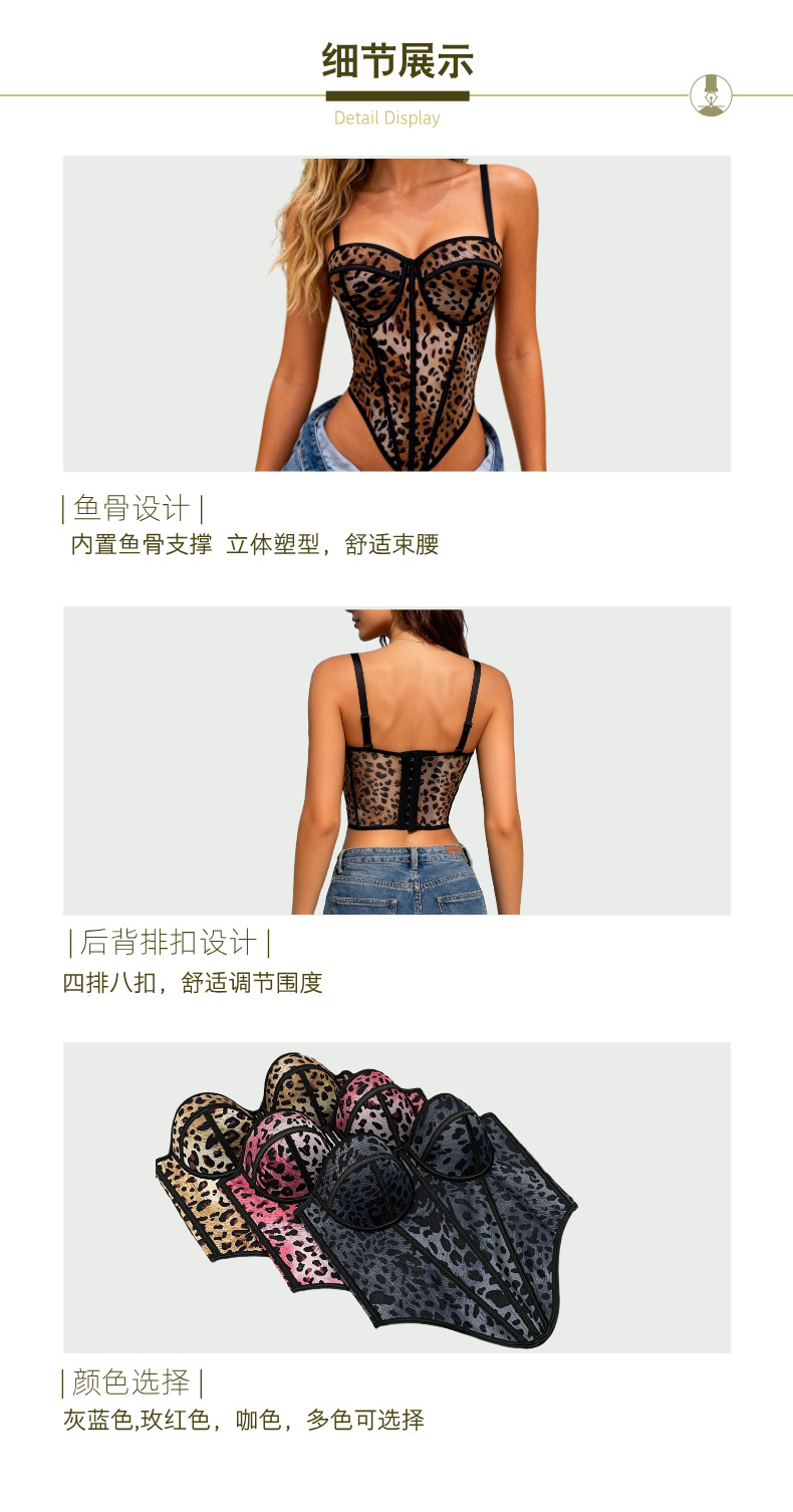 Кросс-бордерный бюстгальтер с леопардовым принтом и сеткой, с встроенными вкладышами и пуговицами на спине, утягивающий и сексуальный бюстгальтер-майка