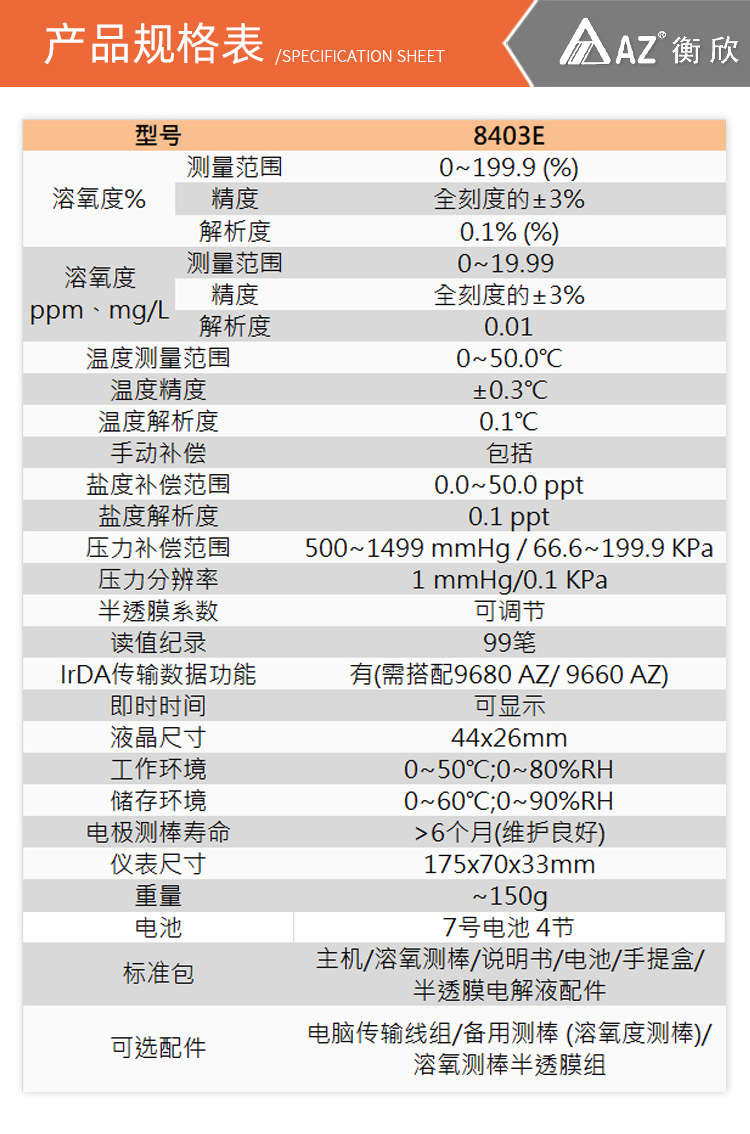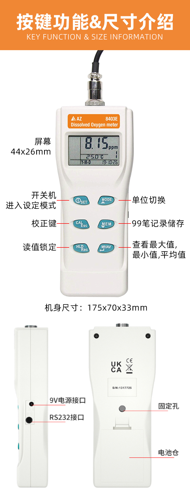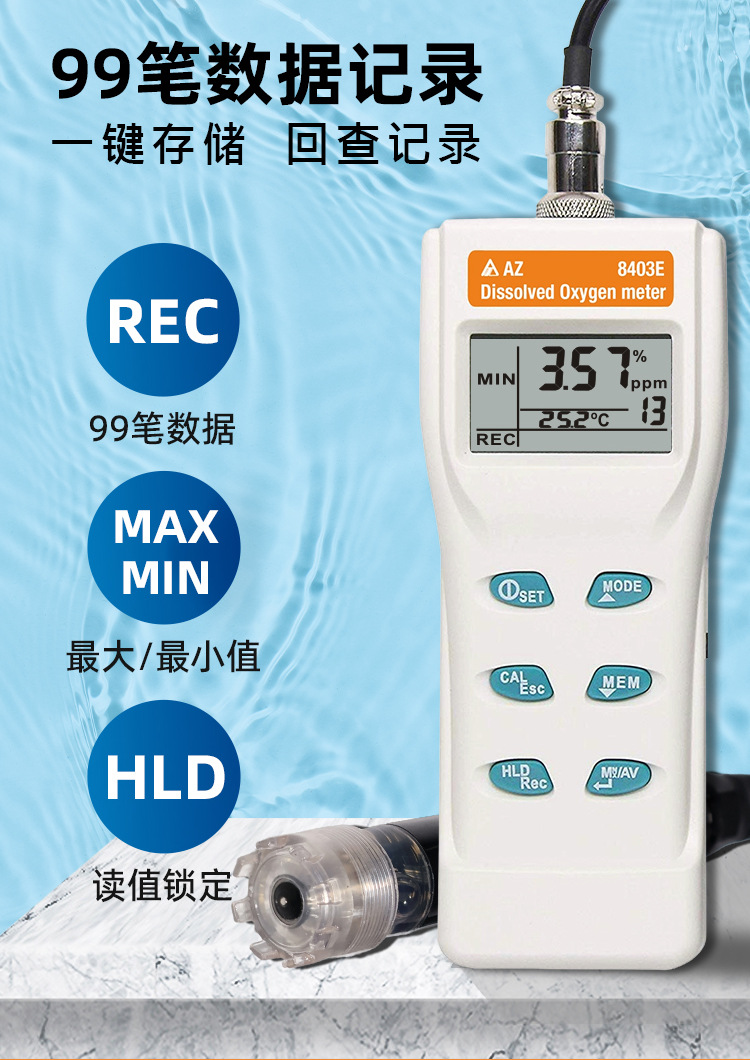 Портативный метр растворенного кислорода Taiwan Hengxin Az8403E для аквакультуры, измерение содержания кислорода в воде
