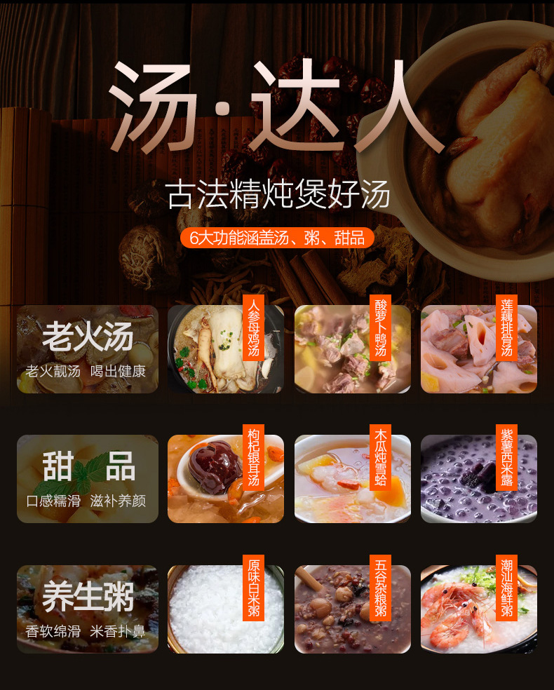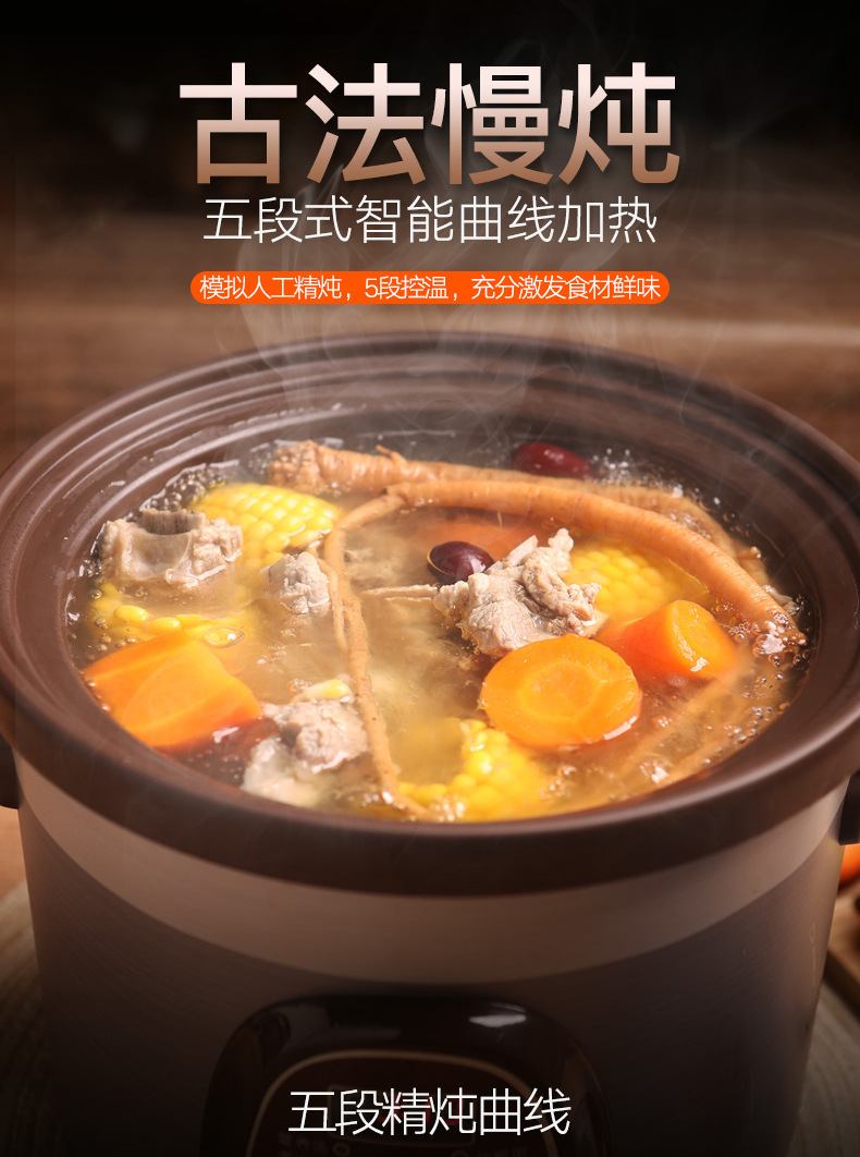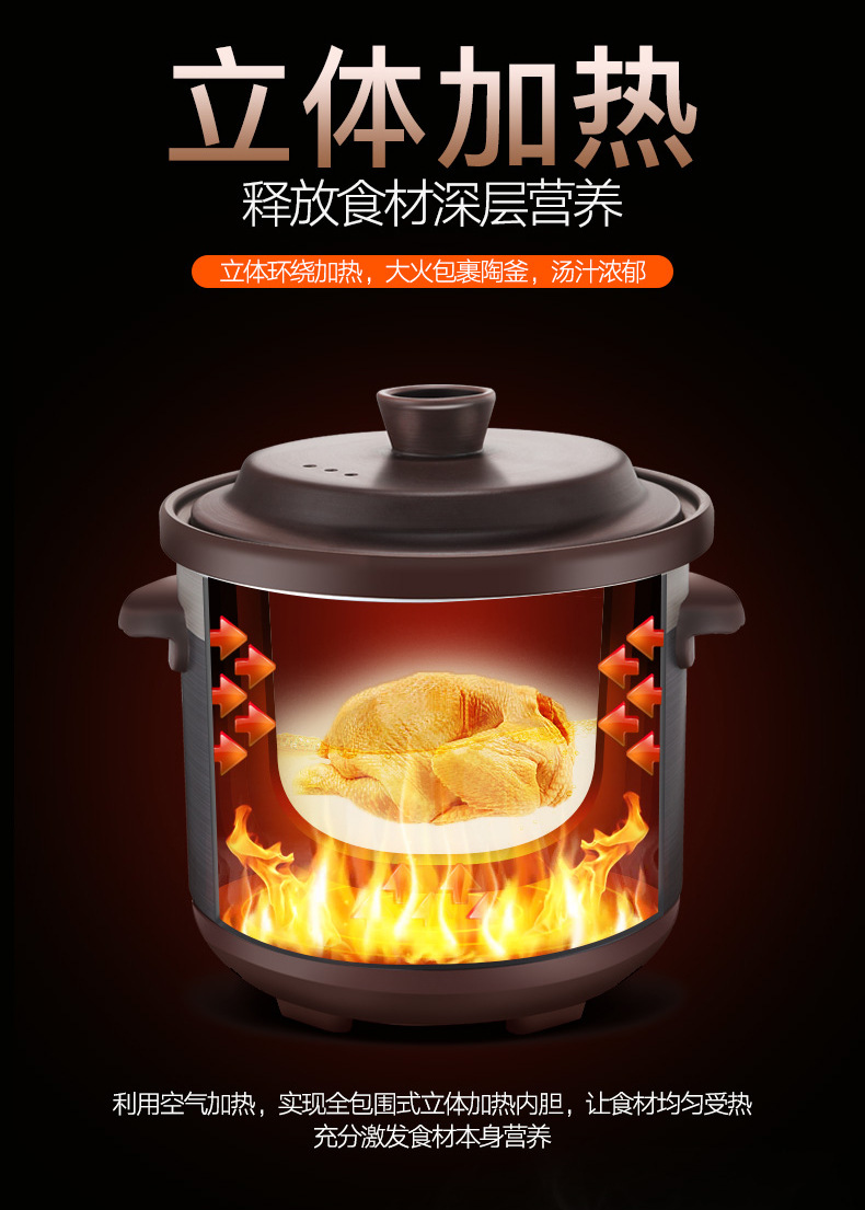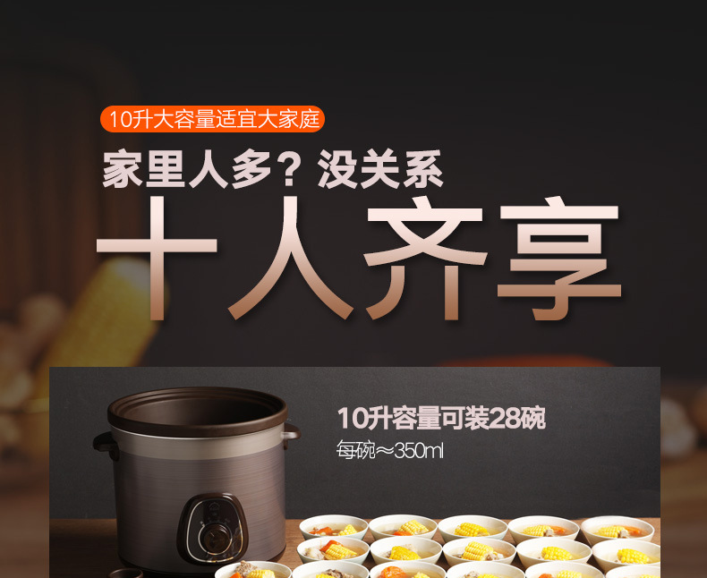 Кристальный дворец, многофункциональная полностью автоматическая кастрюля для каши и супа 10L, большая емкость, кастрюля из фиолетовой глины