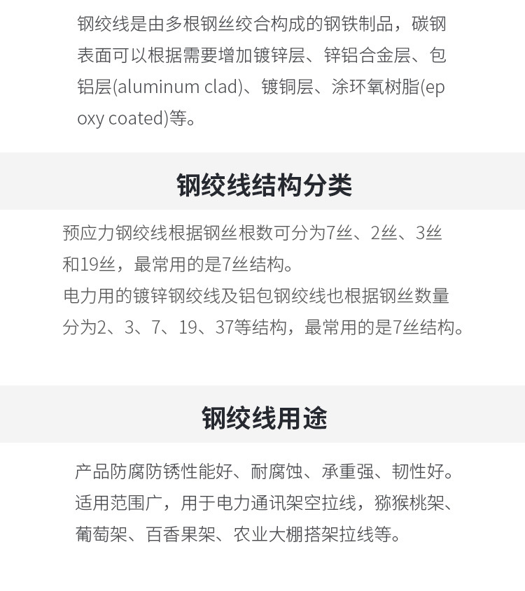 Горячепоцинкованная стальная прядь, жесткий стальной трос для агрономического шпалера киви, основная линия, коммуникационная силовая диагональная натяжная линия, несущая линия, многопрядная