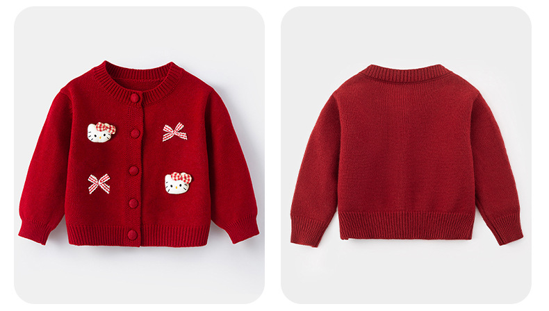 Новый кардиган для девочек 2025 красный свитер осень и зима для девочек, вязаный свитер для малышей 5666
