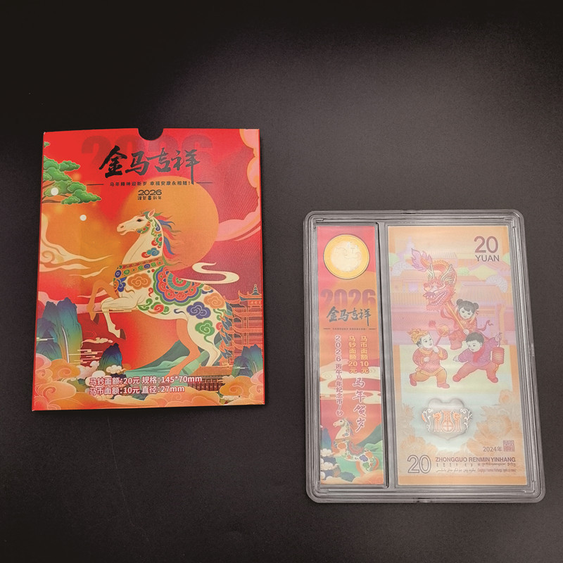 2026 Новый год Издание Пластиковая коробка Eva Модель Прозрачная коробка Год Лошади 1 монета 1 банкнота Подарочная коробка Коллекционная коробка банкнот Лошадь