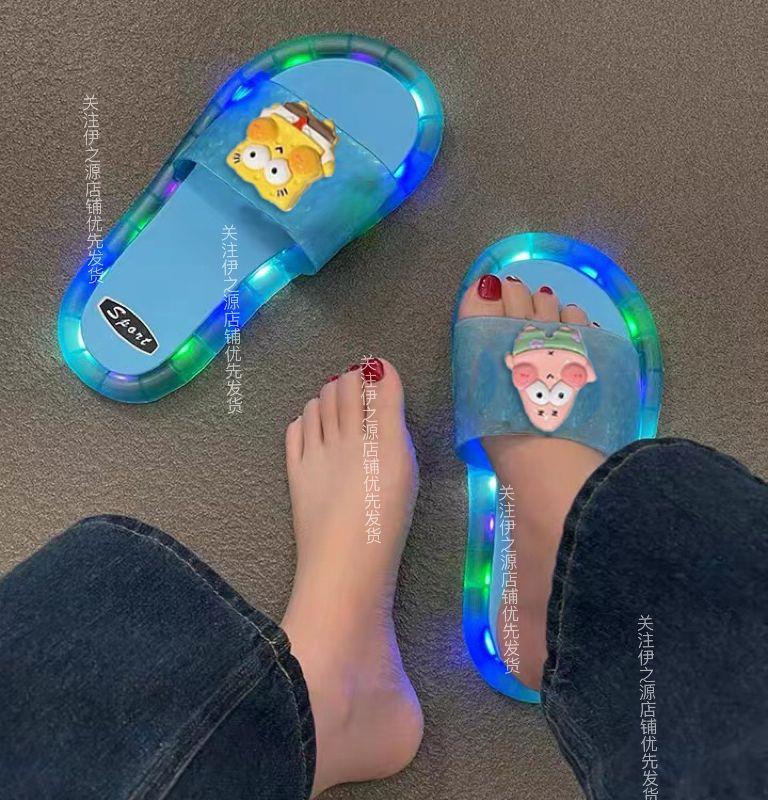 Модные светящиеся шлепанцы для женщин, стиль уличной моды, мультяшные мягкие сандалии с ночным светом, новый летний стиль