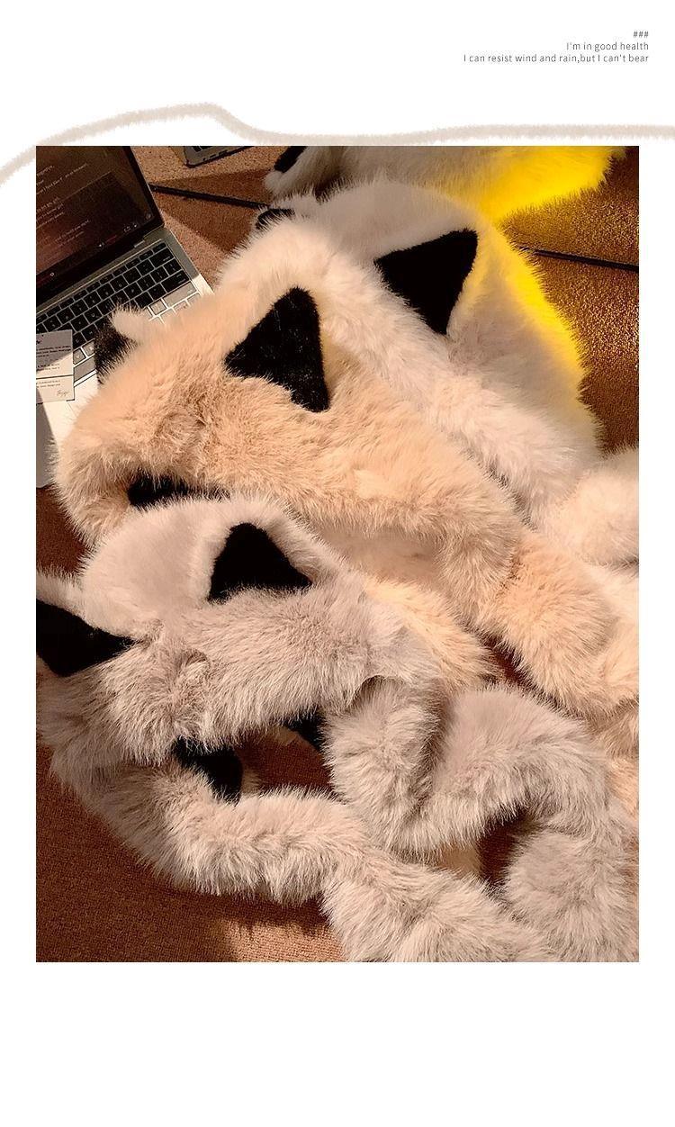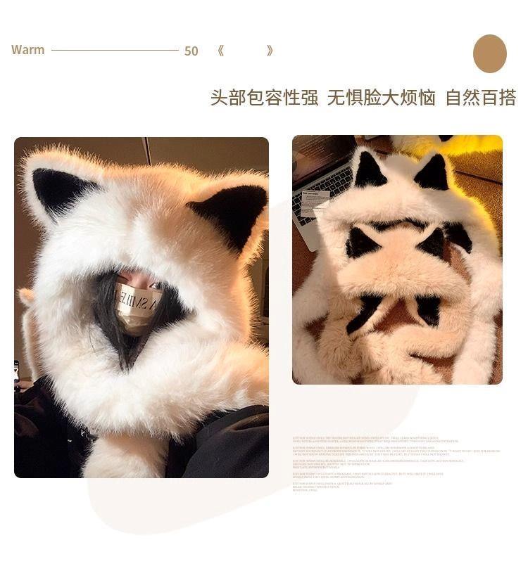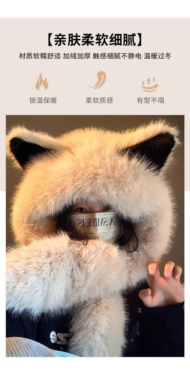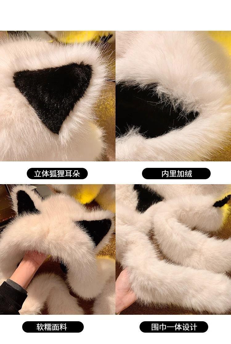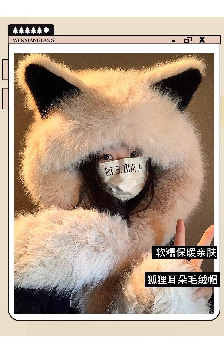 Шапка и шарф из толстого плюша с ушками лисы, зимний теплый и холодостойкий женский комплект