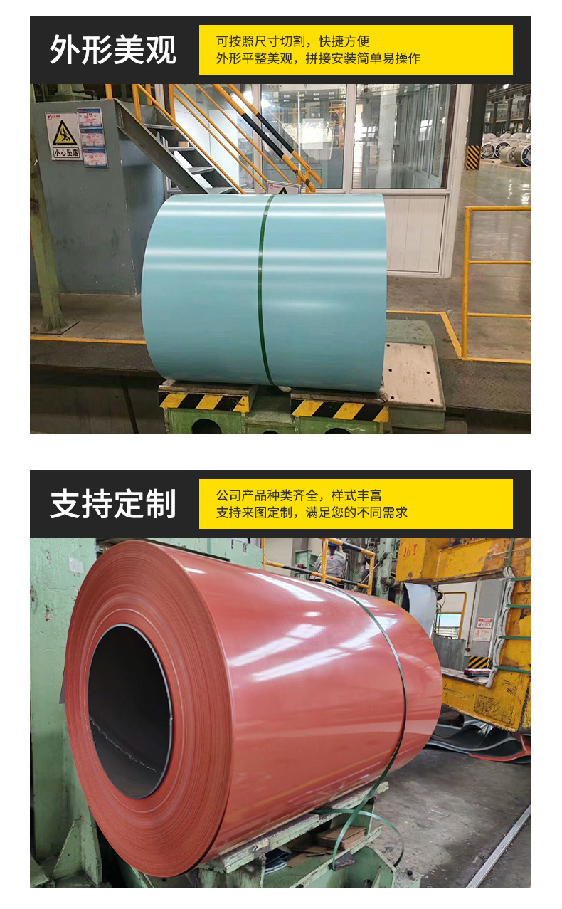 Цветные стальные рулоны Baosteel, цветные стальные плитки, цветные стальные рулоны, навесные панели, рекламные щиты, заборные панели, плитки для крыши, открытые резанные и прессованные плитки