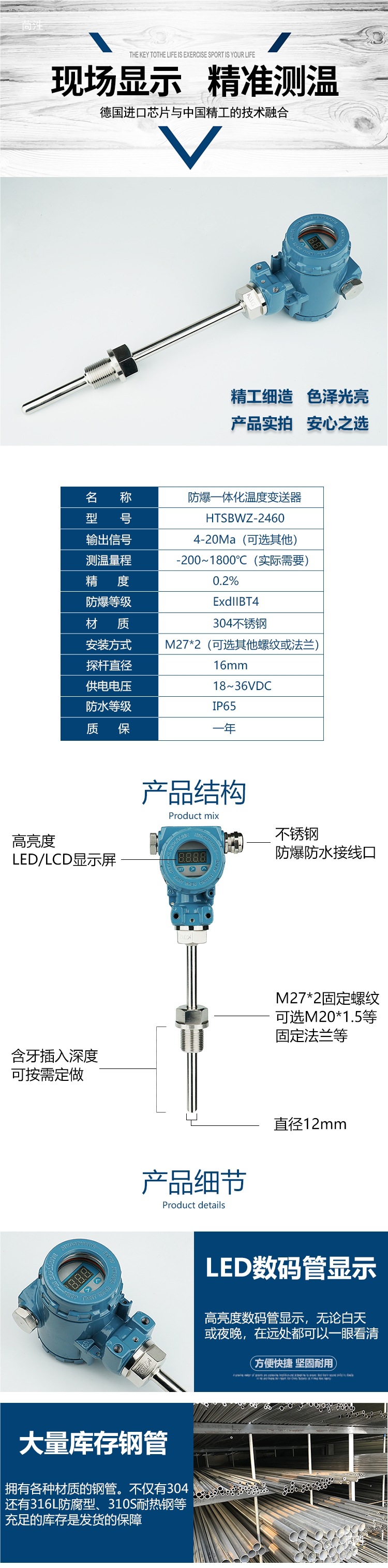 Высокоточный цифровой дисплей взрывозащищенный интегрированный датчик температуры Pt100 термостойкий 4-20Ma Rs485