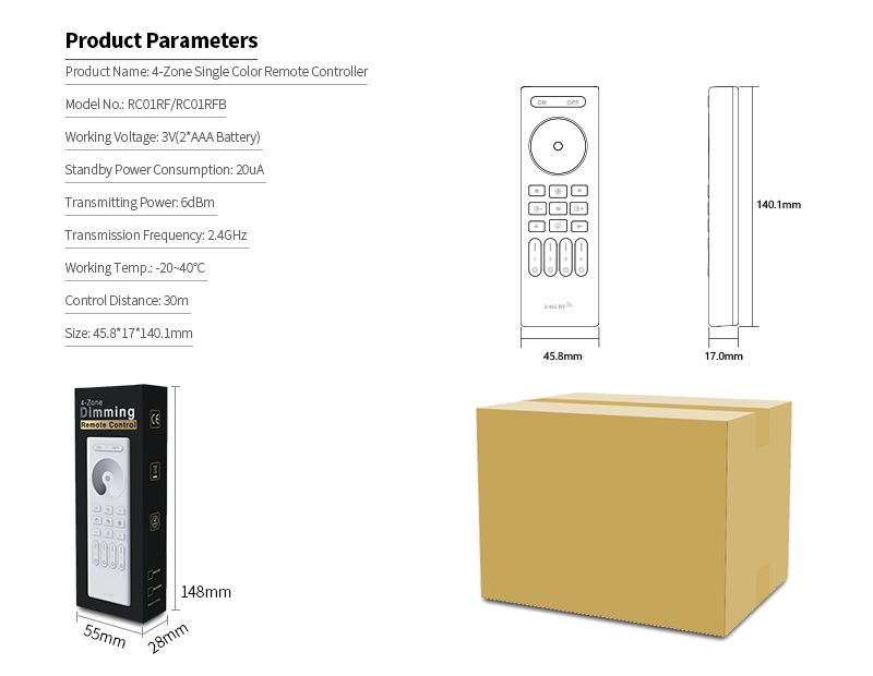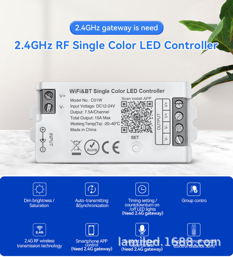 C01Rf2.4G контроллер одноцветной светодиодной ленты поддержка затемнения, умный и групповой пульт управления