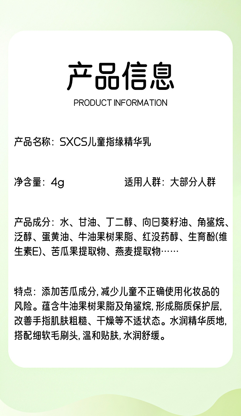 Sxcs Эссенция для краев пальцев детей, экстракт растительного молока, увлажняет, бережно ухаживает, не раздражает, сглаживает и смягчает край пальца