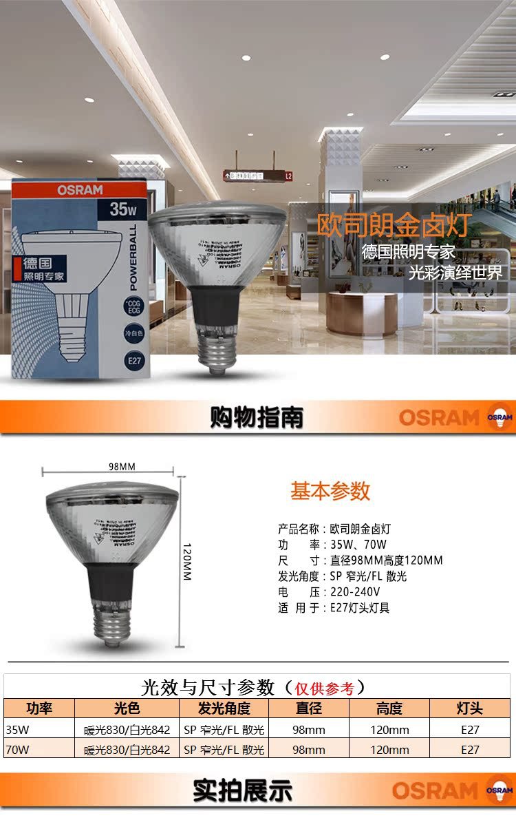 Osram Hic-Par30 35W/842 Sp керамическая металлогалогенная лампа желтого света узкий светильник E27