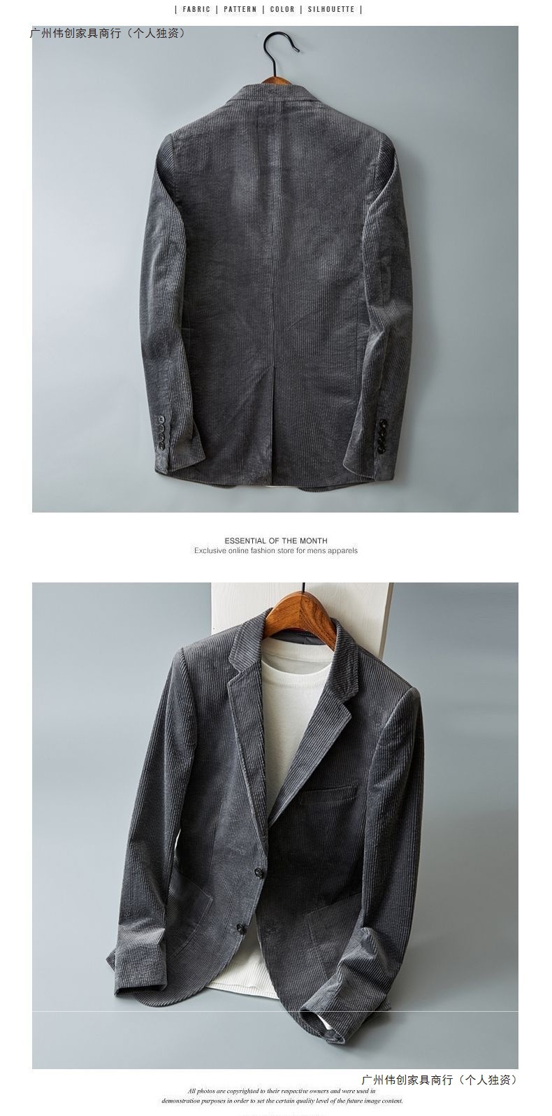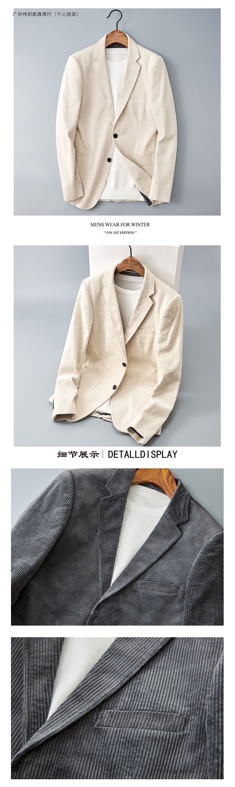 Куртка Костюм из Вельвета Мужская Осень Новая Полосатая Ретро Высококачественная Деловая Узкая Красивый Повседневный Костюм