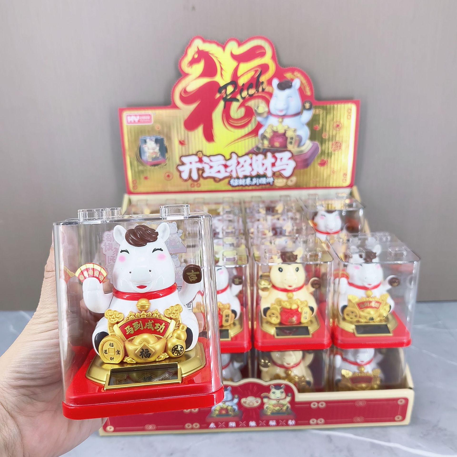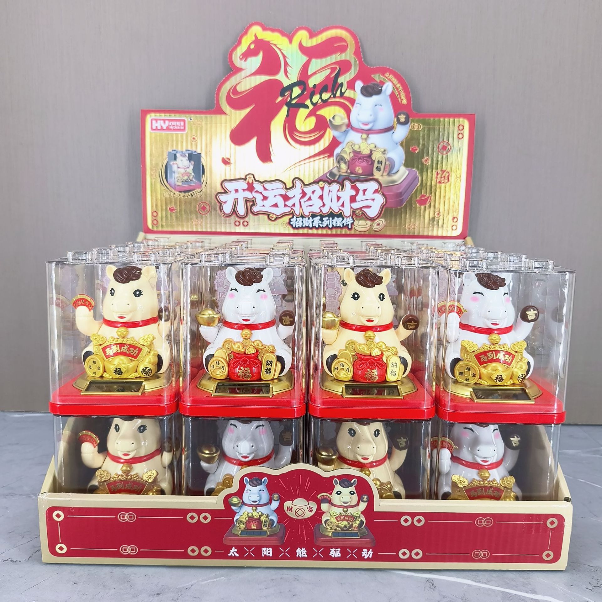 Новогодний сувенир Кот удачи Лошадь Солнечная энергия Автоматический машущий кот Декор для стола Автомобильный декор Интерьерный декор Подарок ручной работы