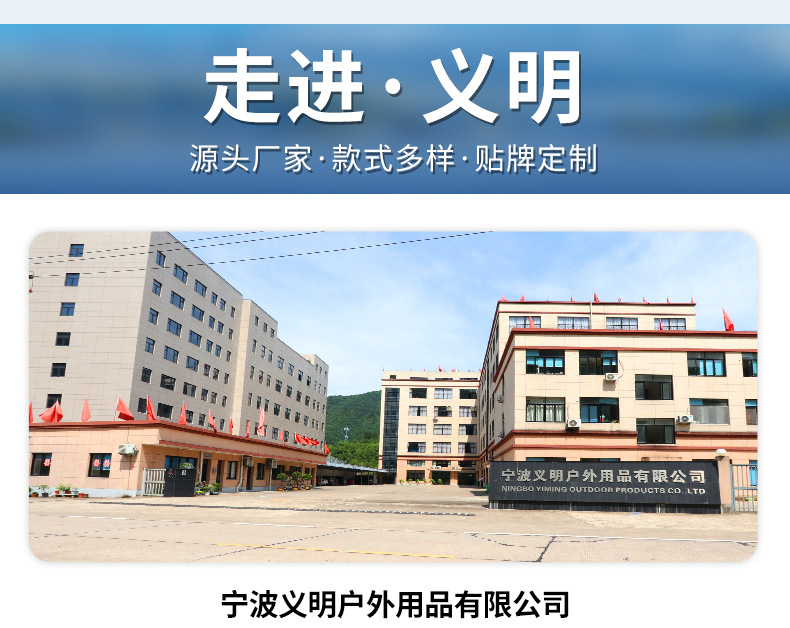 宁波义明户外用品有限公司是一家专注于户外体育用品生产的企业,自2010年成立以来,已深耕行业16年。公司厂房占地6666 平方米,建筑面积14500平方米,拥有150名员工,年销量达8000 万,产品出口俄罗斯、瑞典、美国、日本等多个国家和地区。
