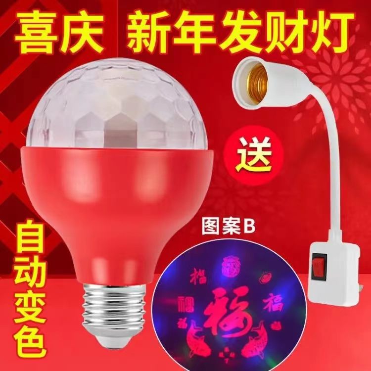 Домашняя цветная вращающаяся лампочка с изменением цвета для китайского Нового года 2023, новая праздничная атмосфера, автоматический фонарь