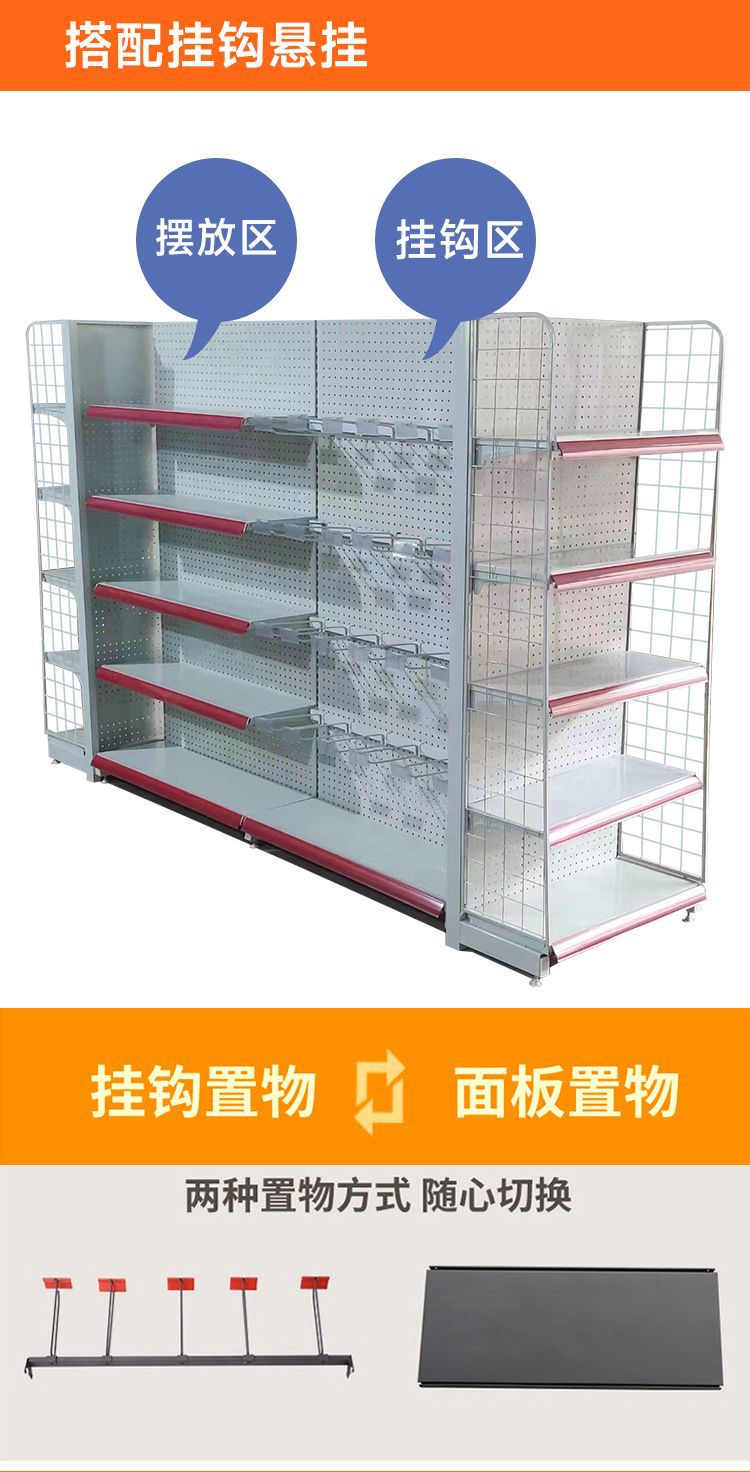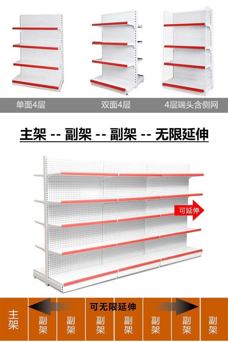 Полки супермаркета Meiyijia, полки одного и двухсторонние, многослойные конечные полки, перфорированные полки