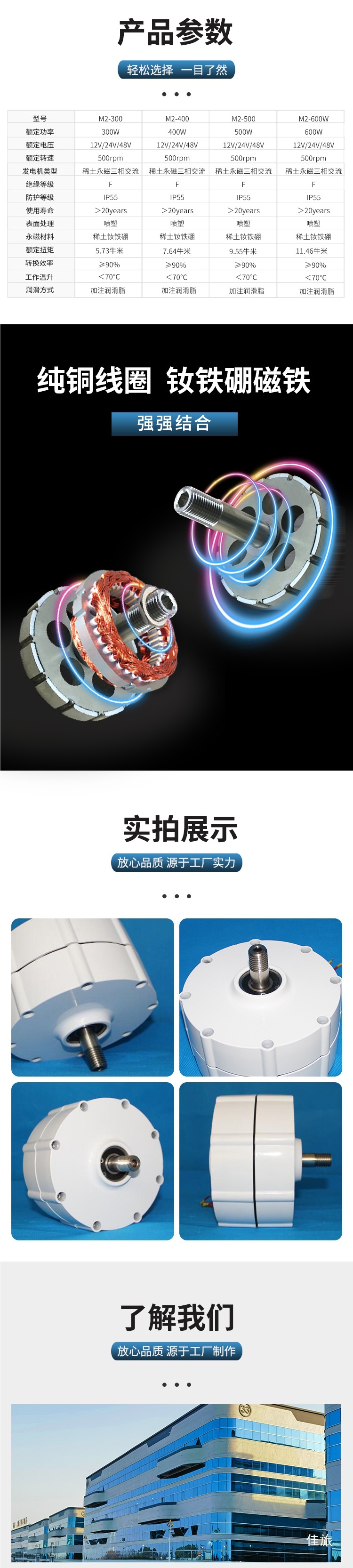 Тип M2 300Вт 400Вт 500Вт 600Вт генератор постоянного тока на редкоземельных материалах трехфазный