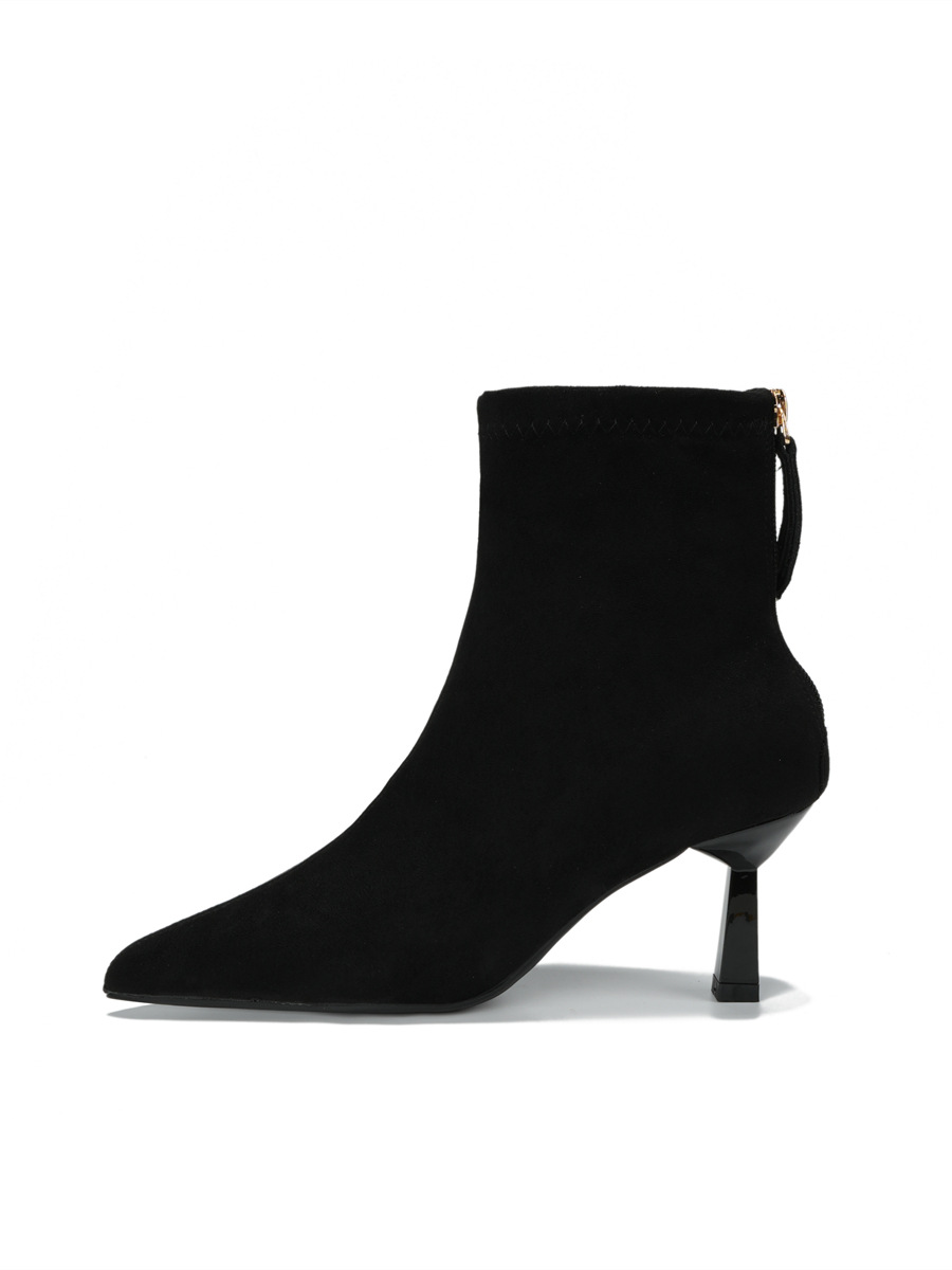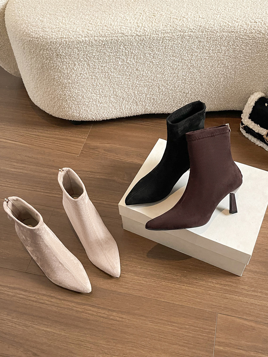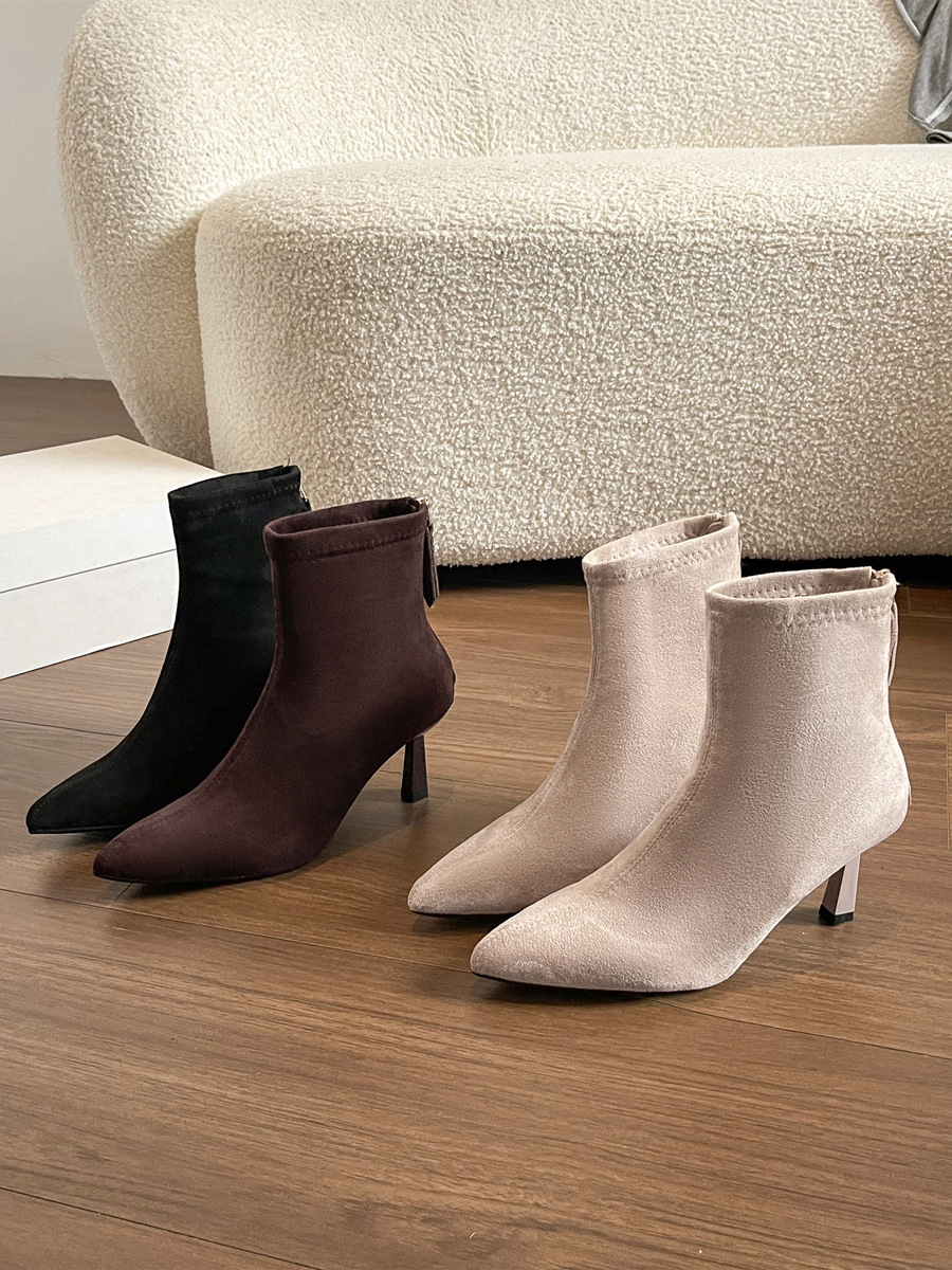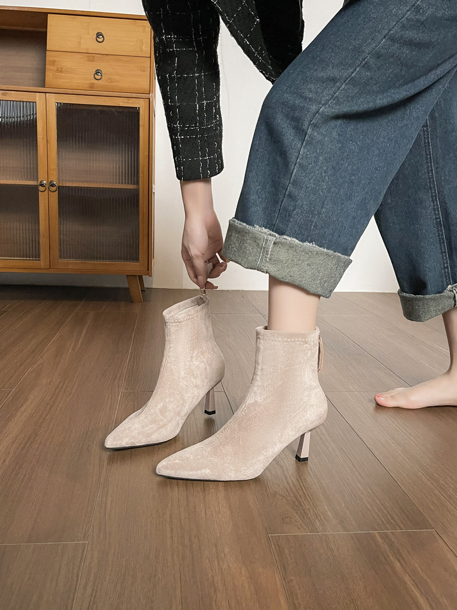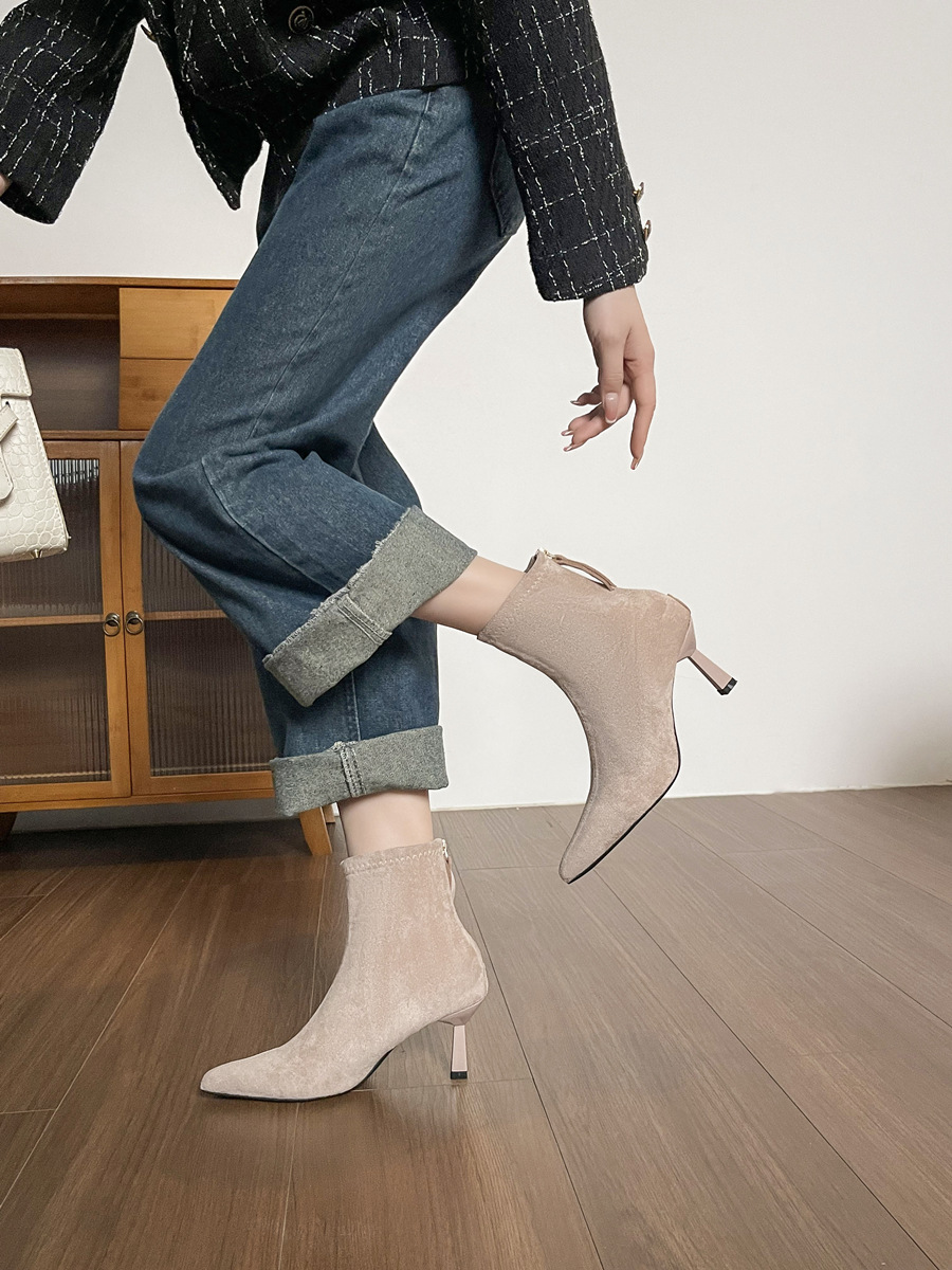 Популярные замшевые ботинки на каблуке 5.5 см с острым носком для женщин, комфортные короткие ботинки